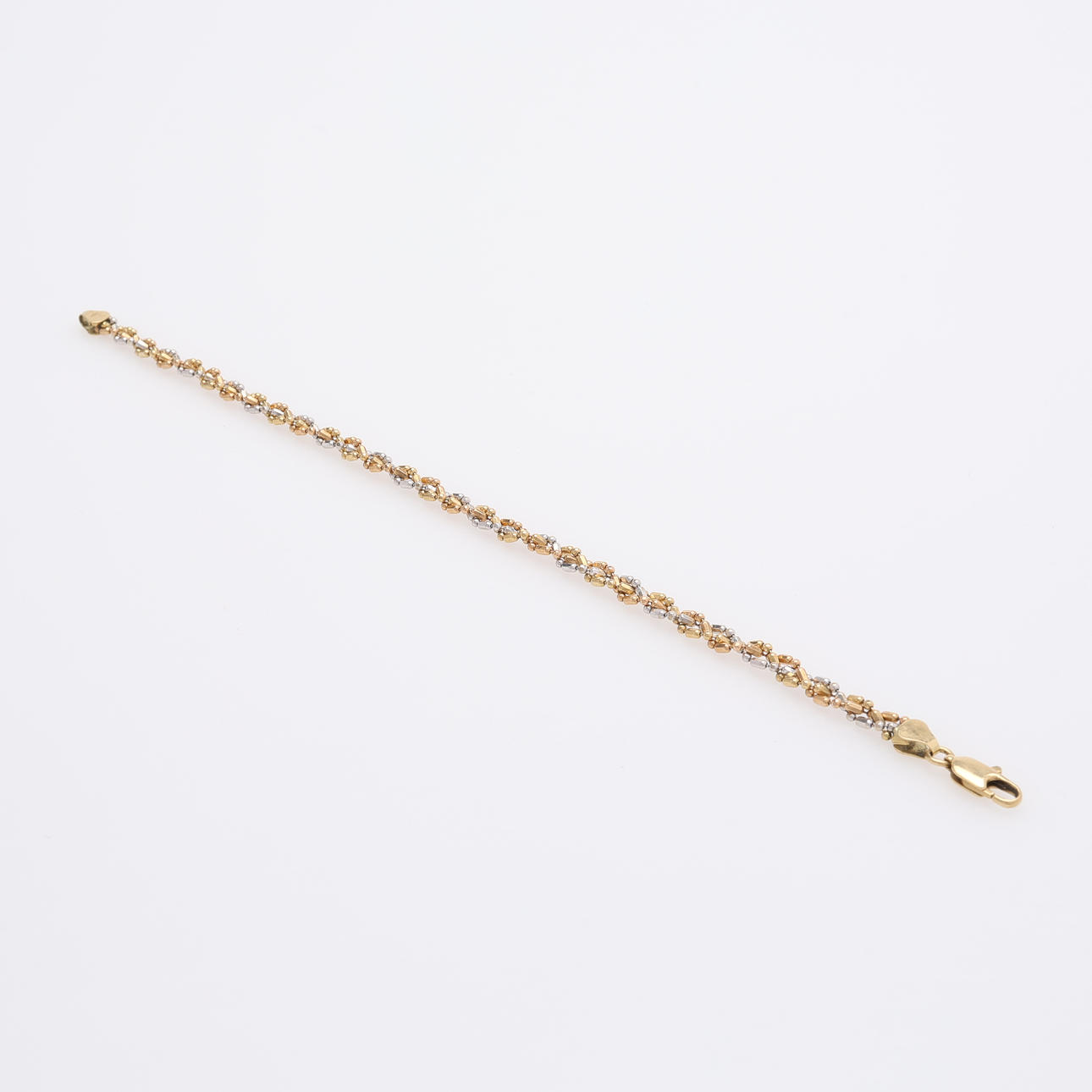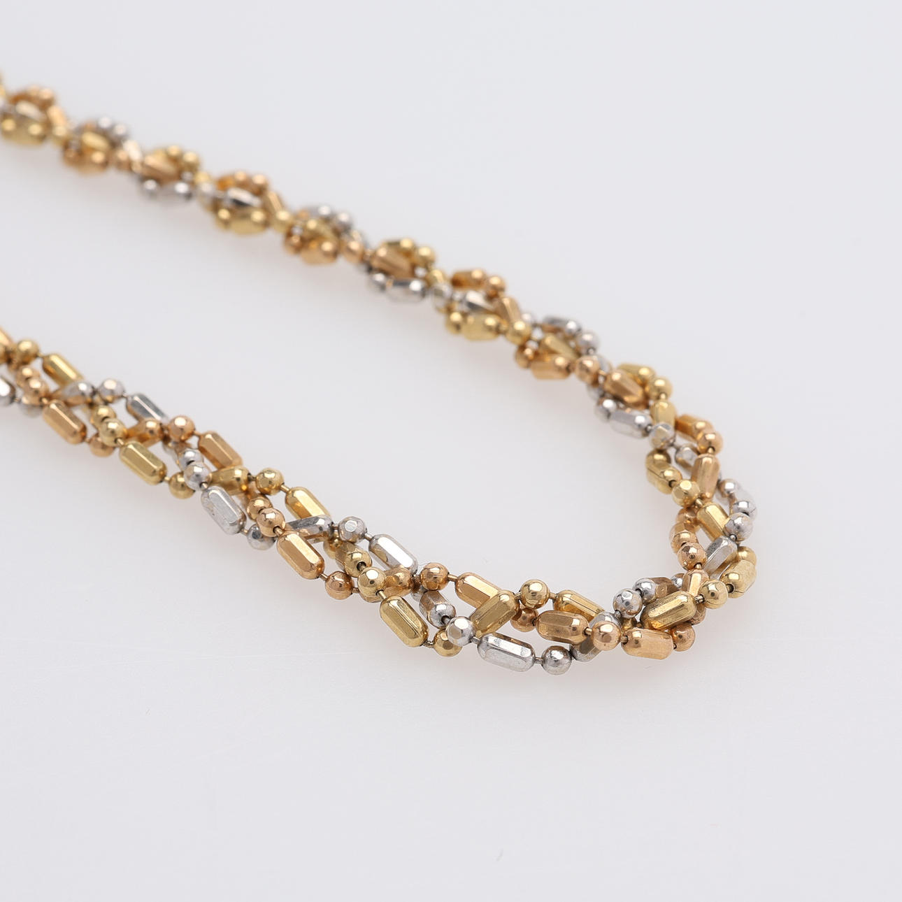 Fantasilänk, trefärgat guld, med springlås, längd ca 20,5 cm.
