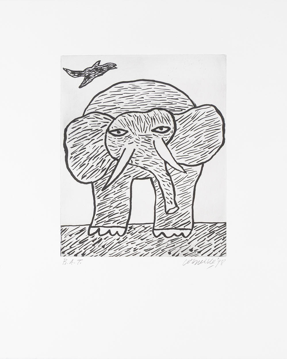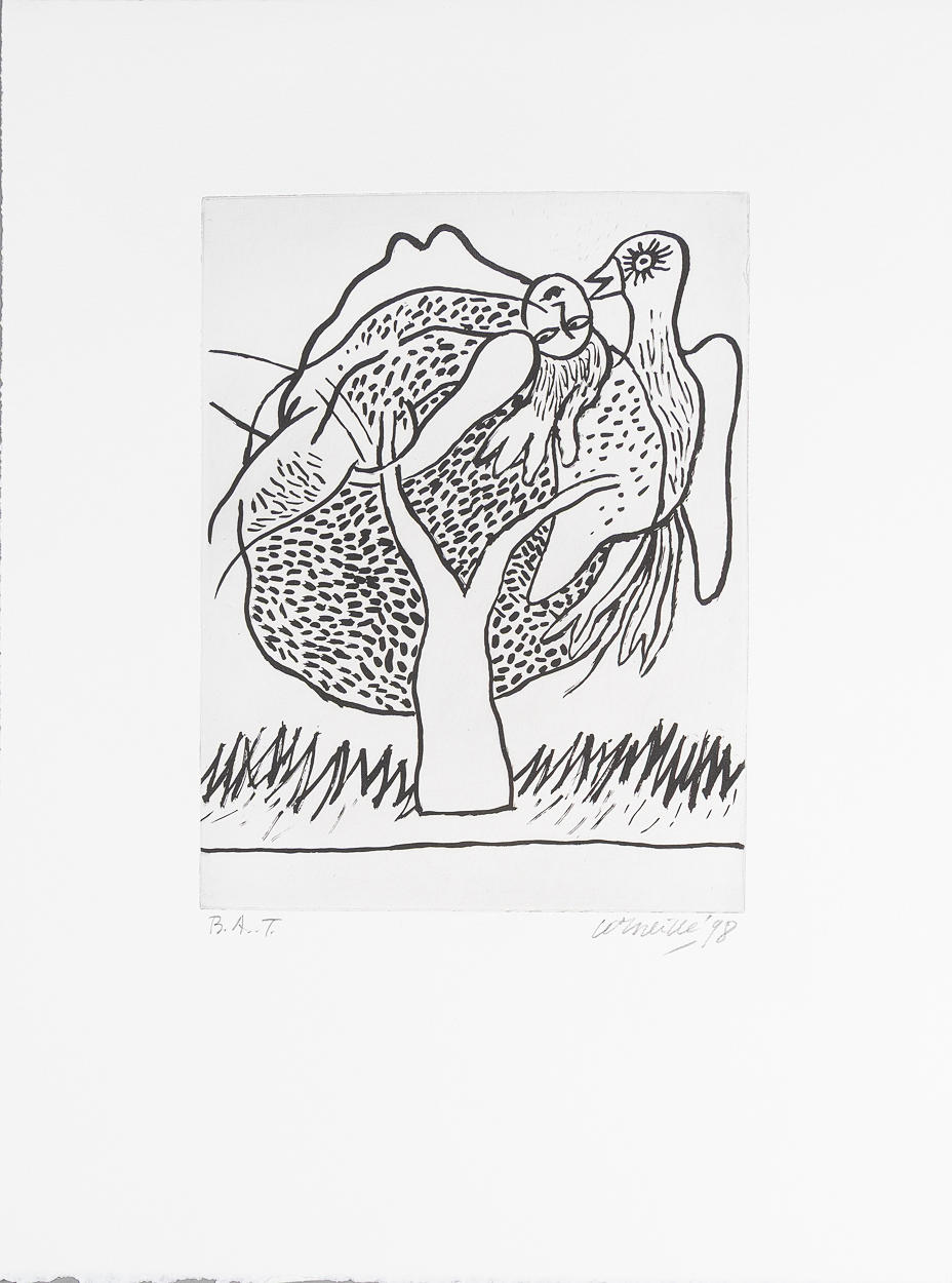 B.A.T (bon à tirer), signerade samt daterade 98, motivmått ca 27x20 cm, bladmått ca 47x36 cm.
