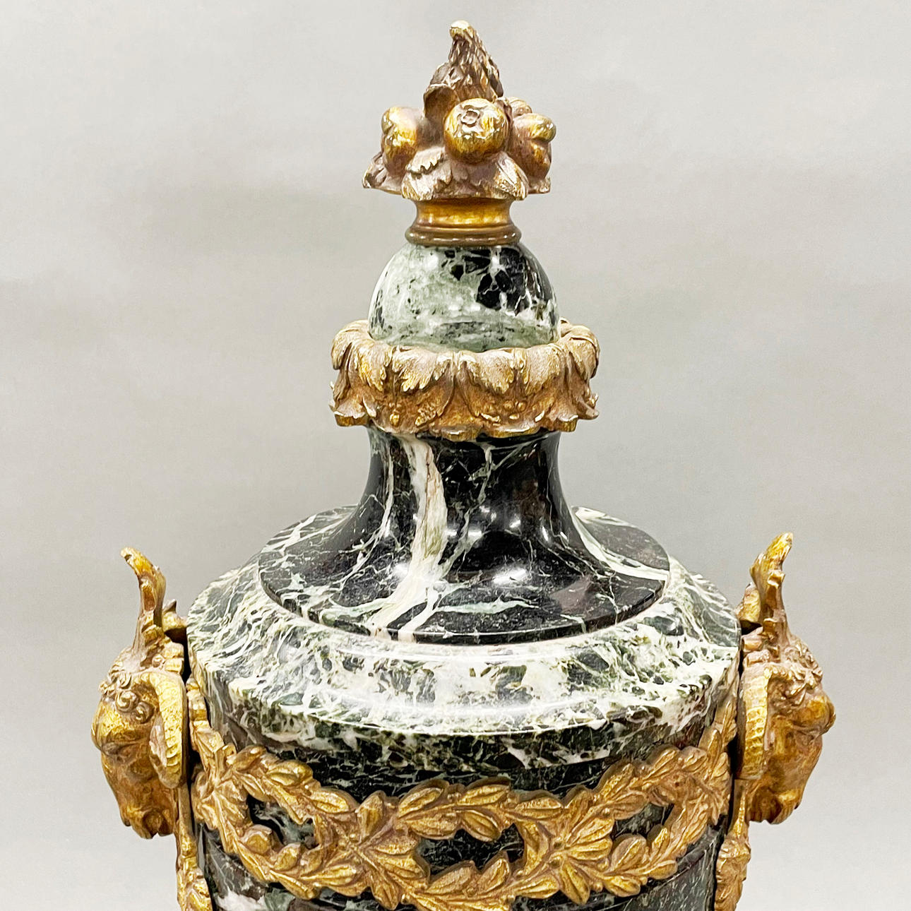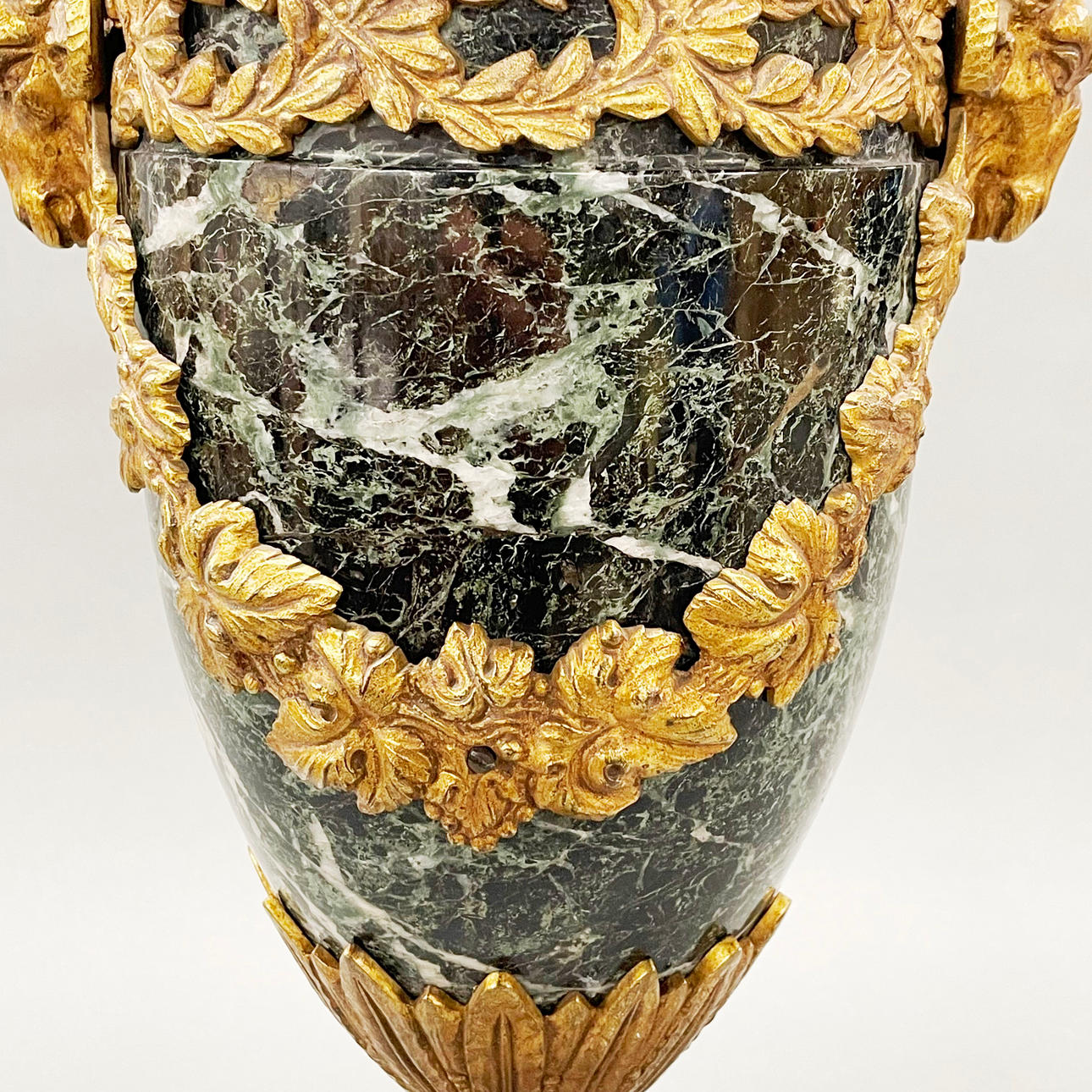 Imponerande ormolumonterad marmorgarnityr, höjd 55cm.