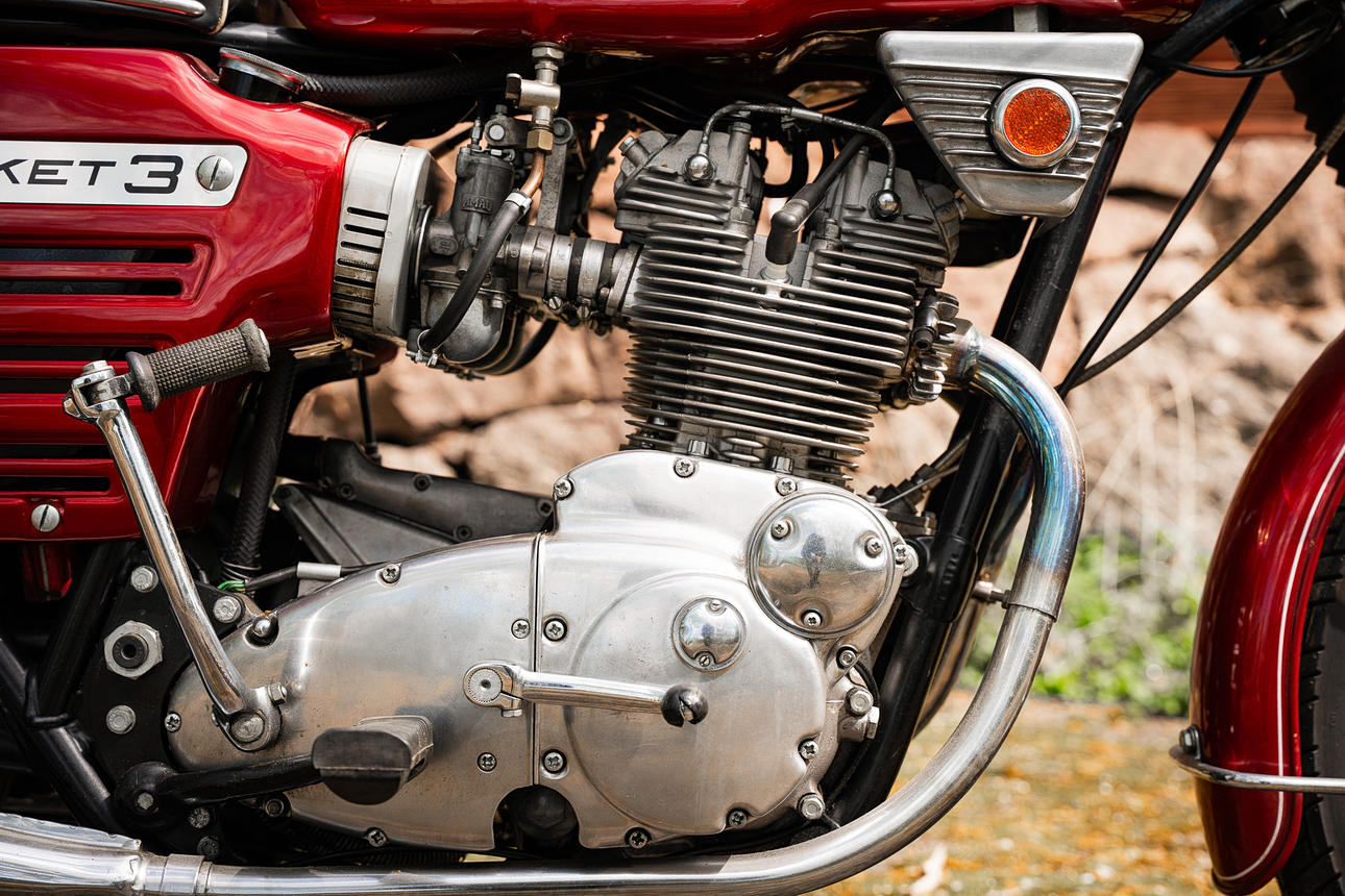 Motortyp: 3 cylindrar, 750cc, 4T, OHV, BSA