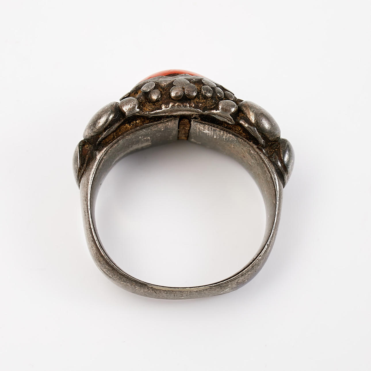 4269384. RING, 1800-tal, Silver, infattad korall, ostämplad.