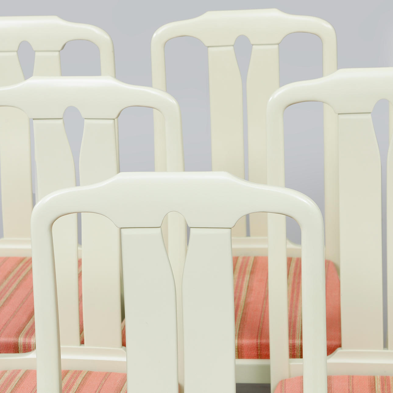 6 stolar, h. 95 cm, b. 48 cm, sitthöjd 46 cm.