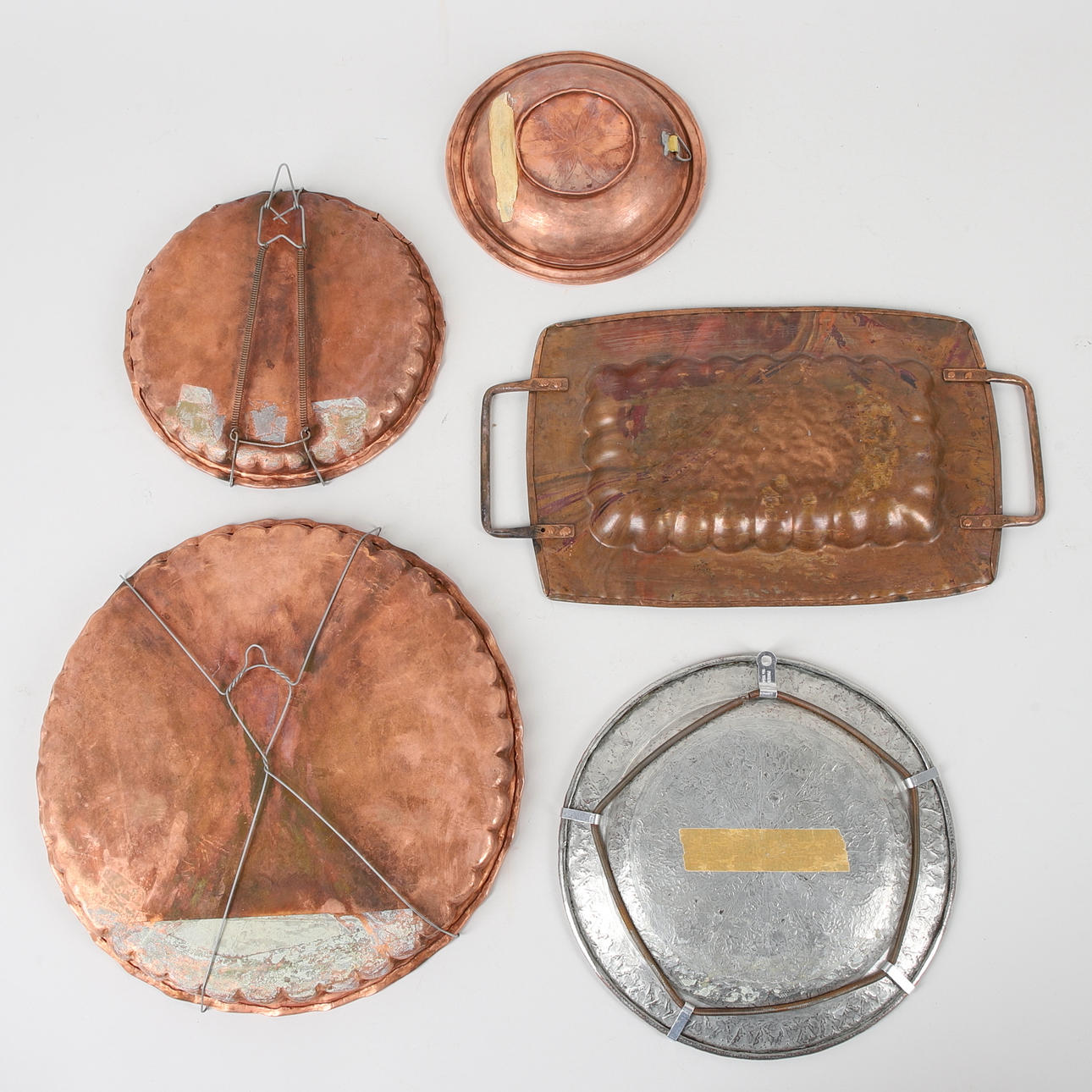 4 st runda, diameter ca 18-30,5 cm. Med handtag ca 36,5x20,5 cm.