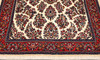 Huvudfält med vit bottenfärg medans huvudbården har en röd bottenfärg. Mattan är i dekor av stiliserad växtlighet.