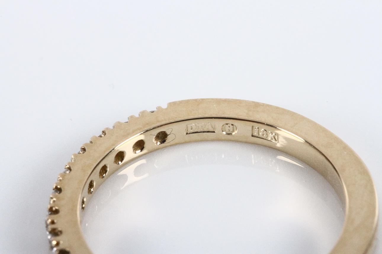 Besatt med 15 st briljantslipade diamanter på totalt 0,27ct, ca Top Wesselton-Wesselton/VVS-VS, storlek 50, vikt 3,0 gram.