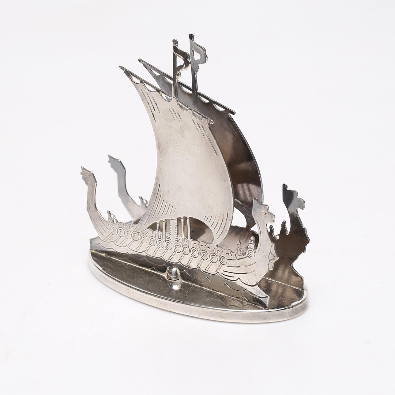 4271719. SERVETTSTÄLL, nysilver, "Vikingaskepp", 1900-tal.