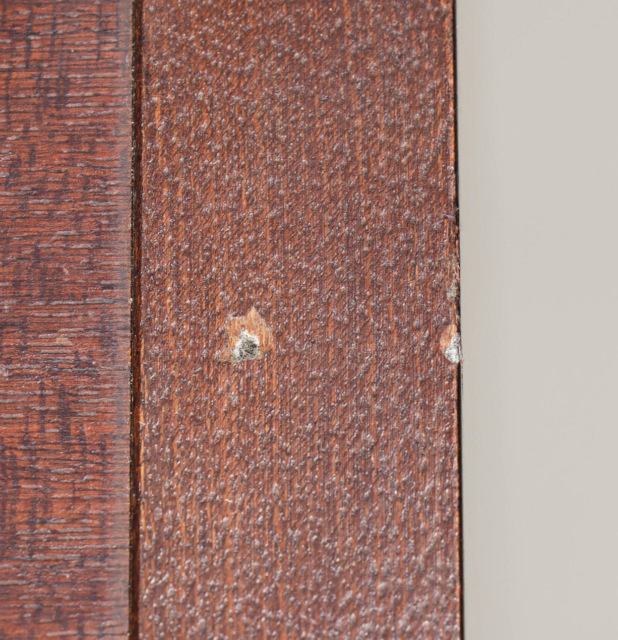 Ytslitage, skavmärken. Några fanérbortfall nedtill. Ej funktionstestade, ingen funktionsgaranti lämnas.