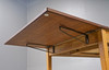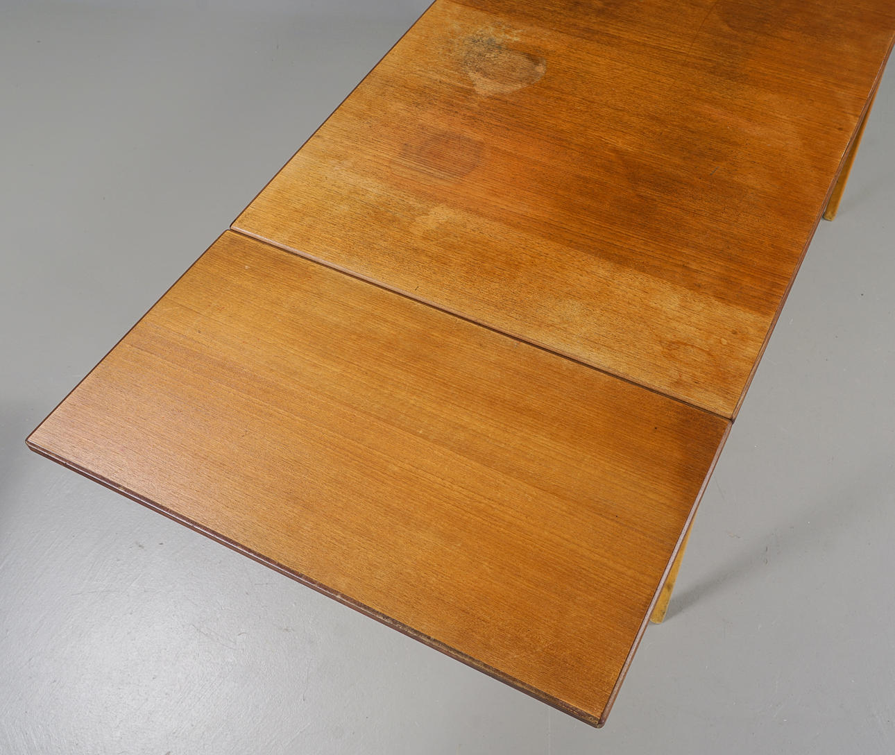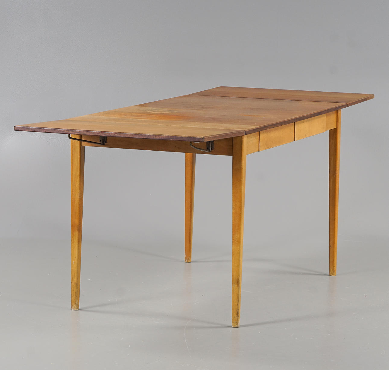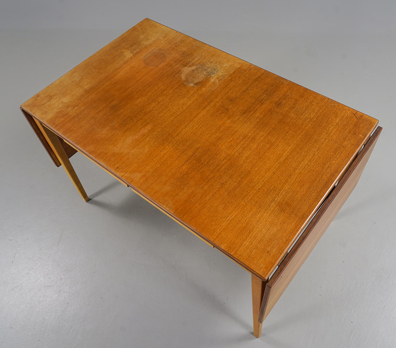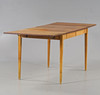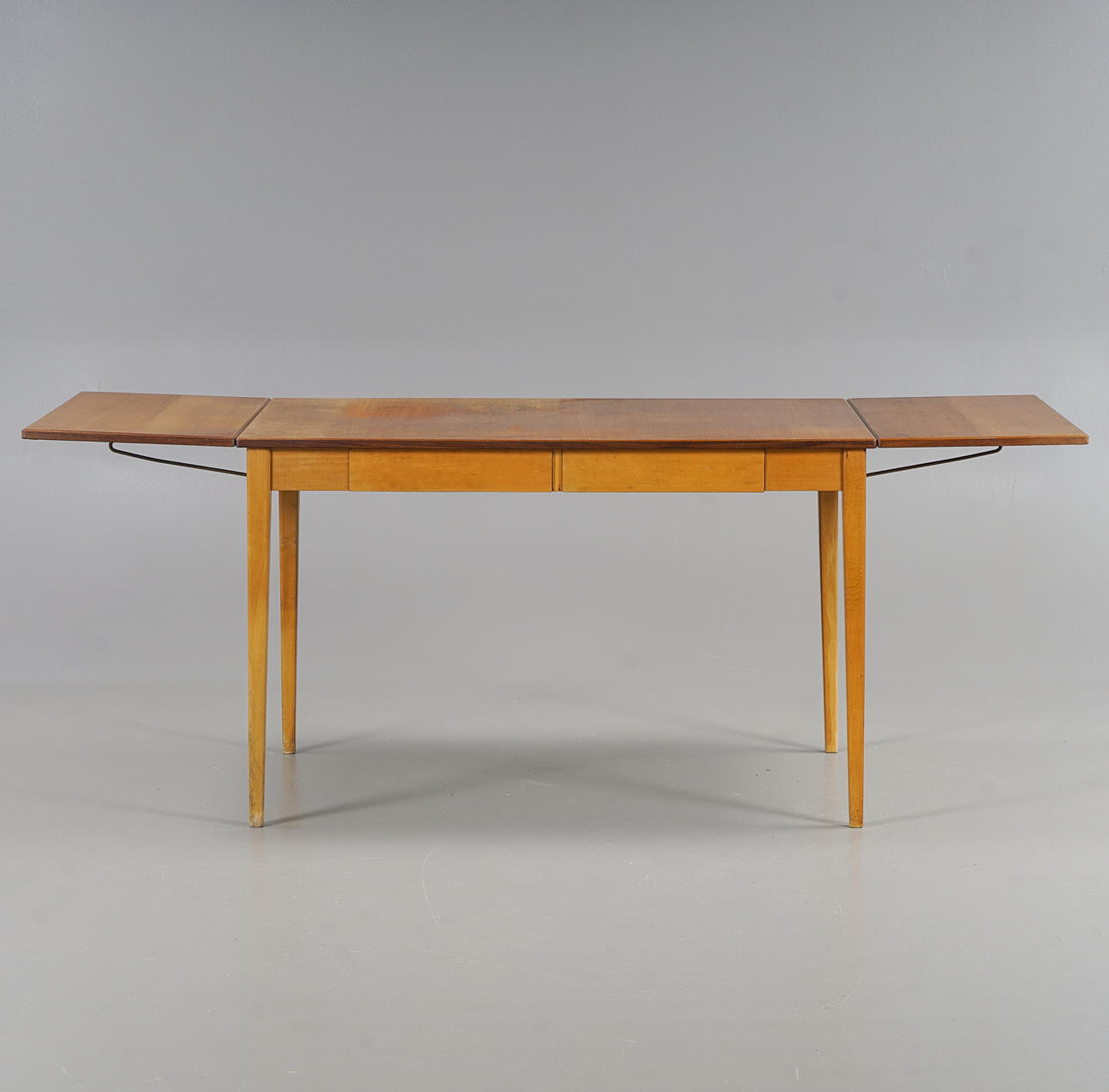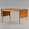 Skiva fanerad med teak, 2 klaffar. Sargen med 2 lådor.