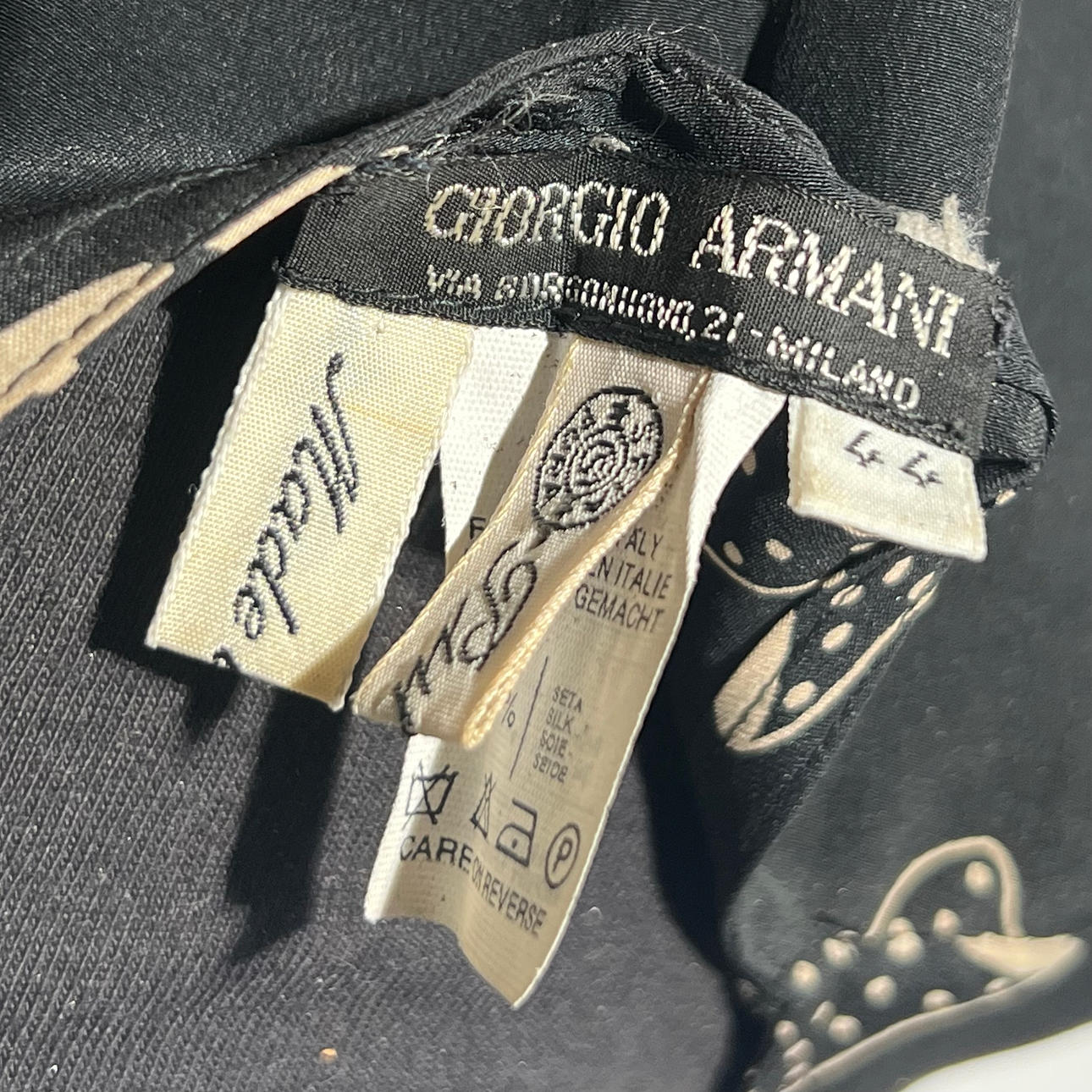 ARMANI. Korsad sidenklänning. Storlek 44.