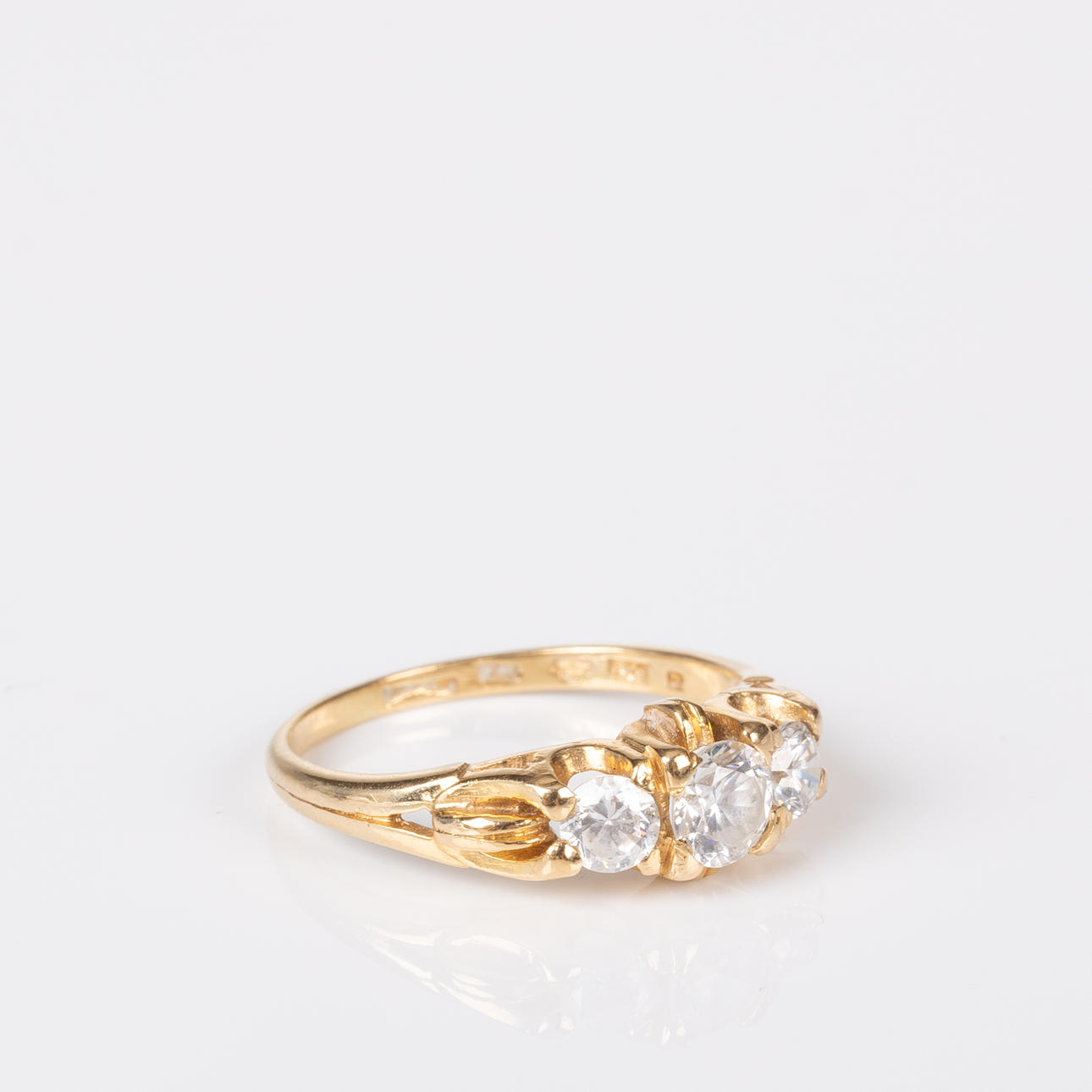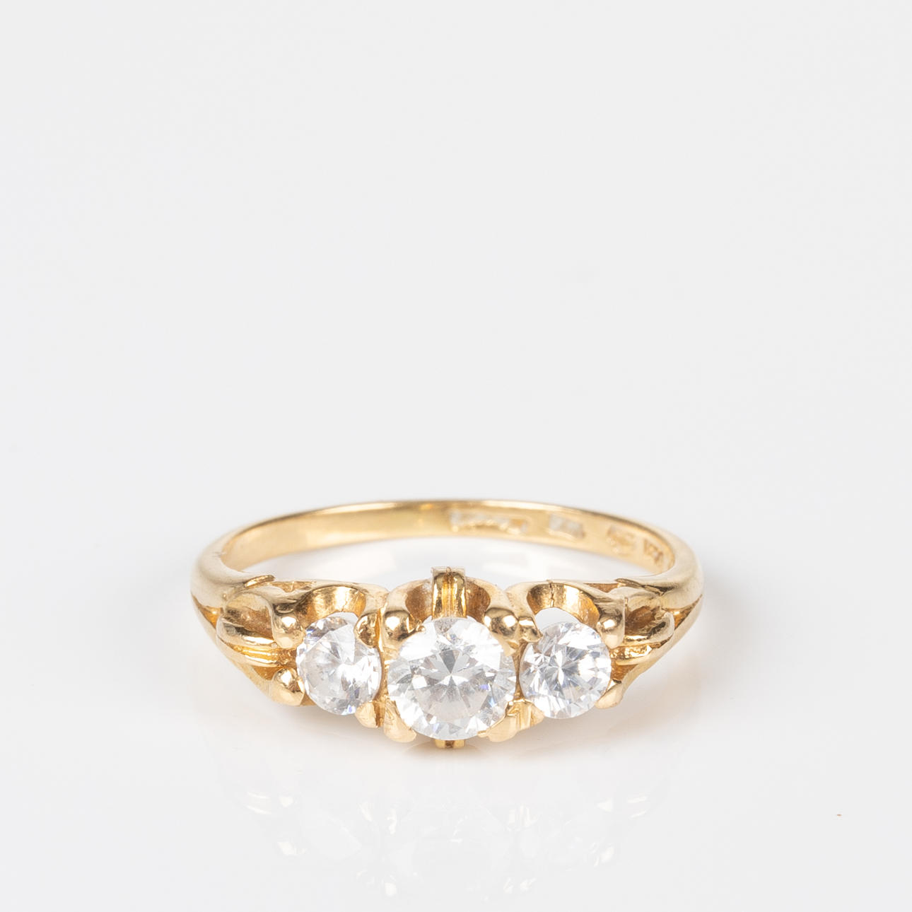 Ring i 18K guld med 3 briljantsliapde cubic zirkoner