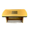 Ett par samtida kontrastblandat träbord med andra nivå under, 120 x 70 x 49 cm.