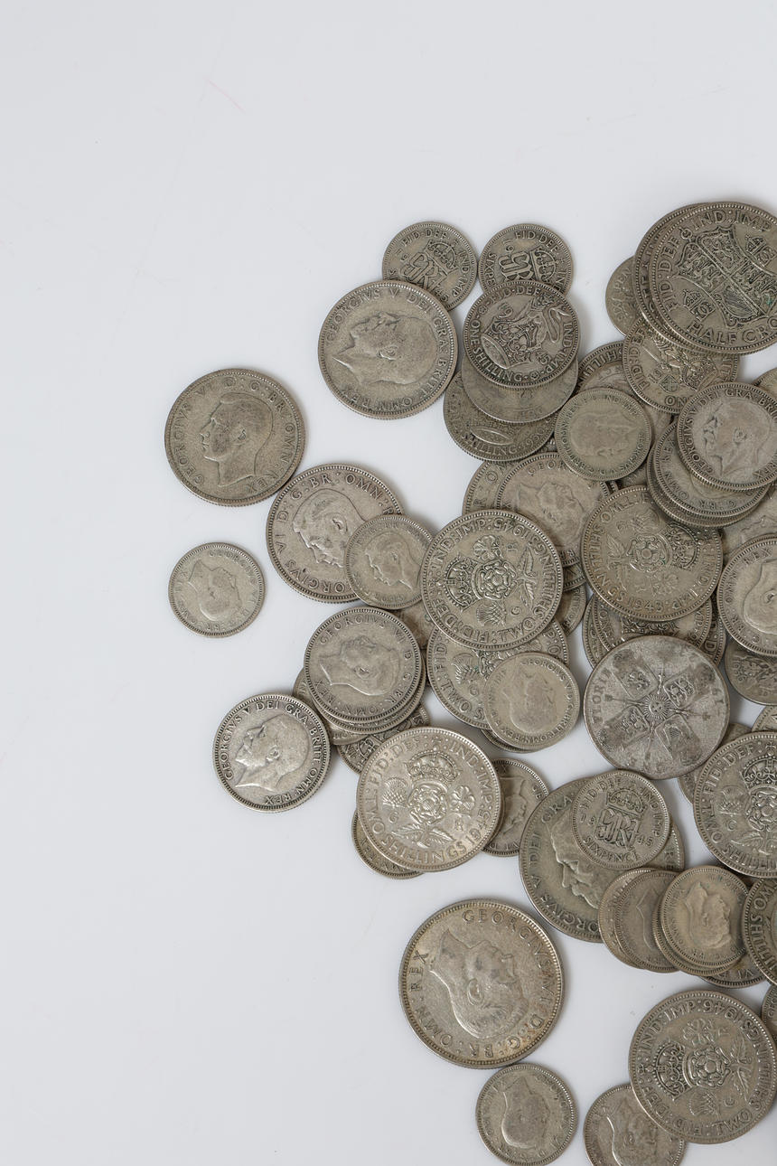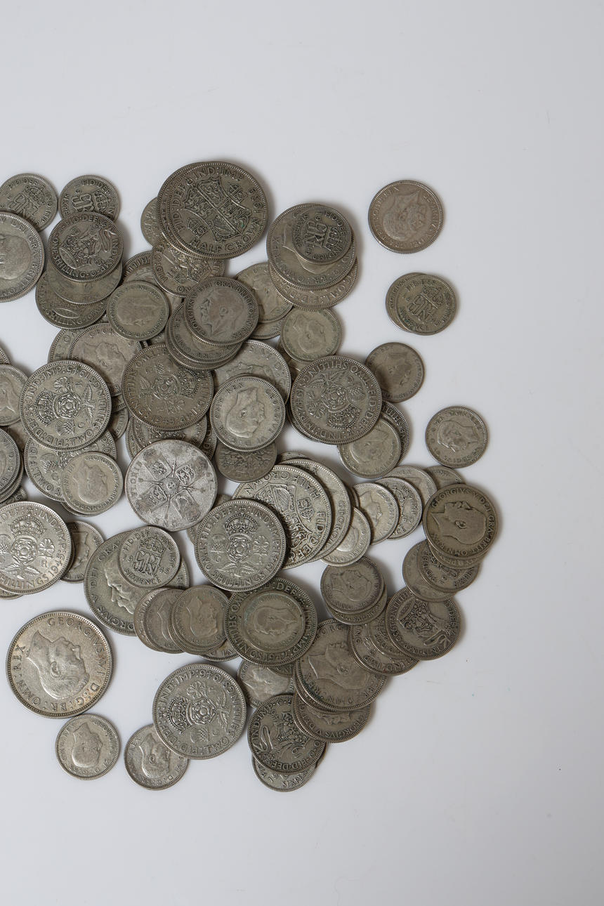 inklusive Halvkronor, Shilling, Floriner och Sixpences 604 gram totalt.