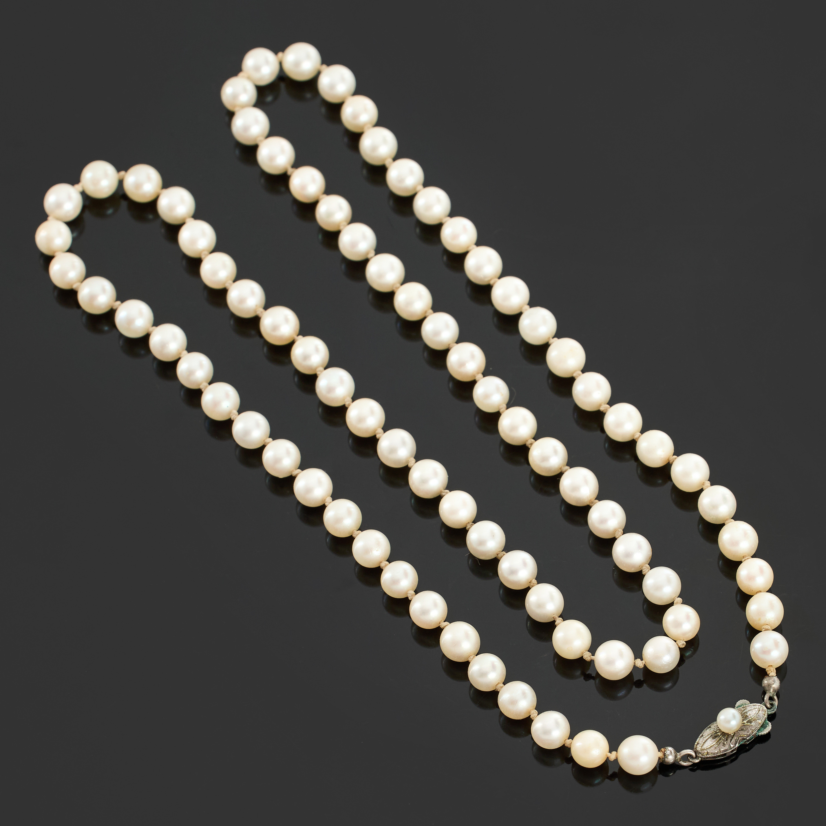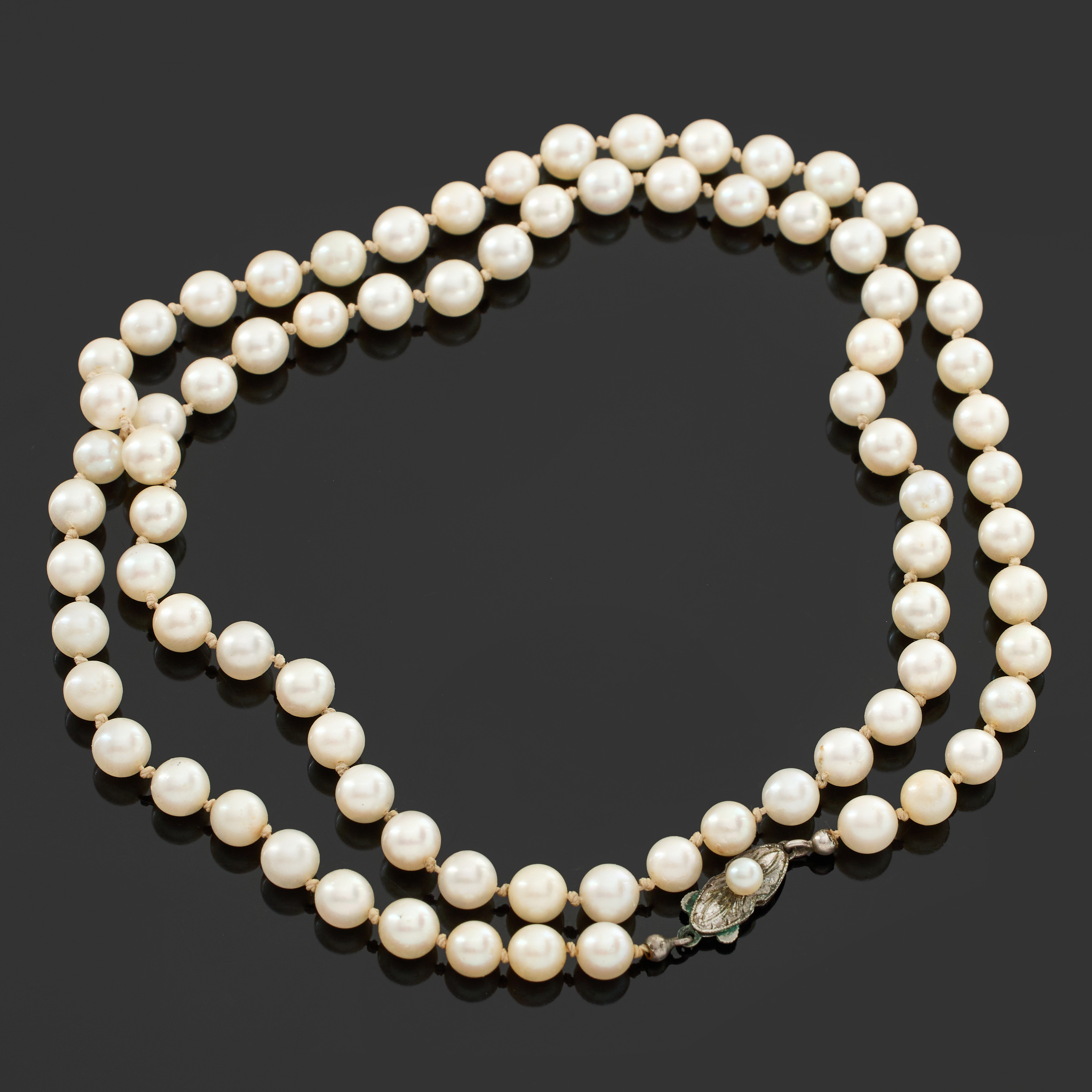 4274878. PÄRLCOLLIER, odlade pärlor, silverlås.