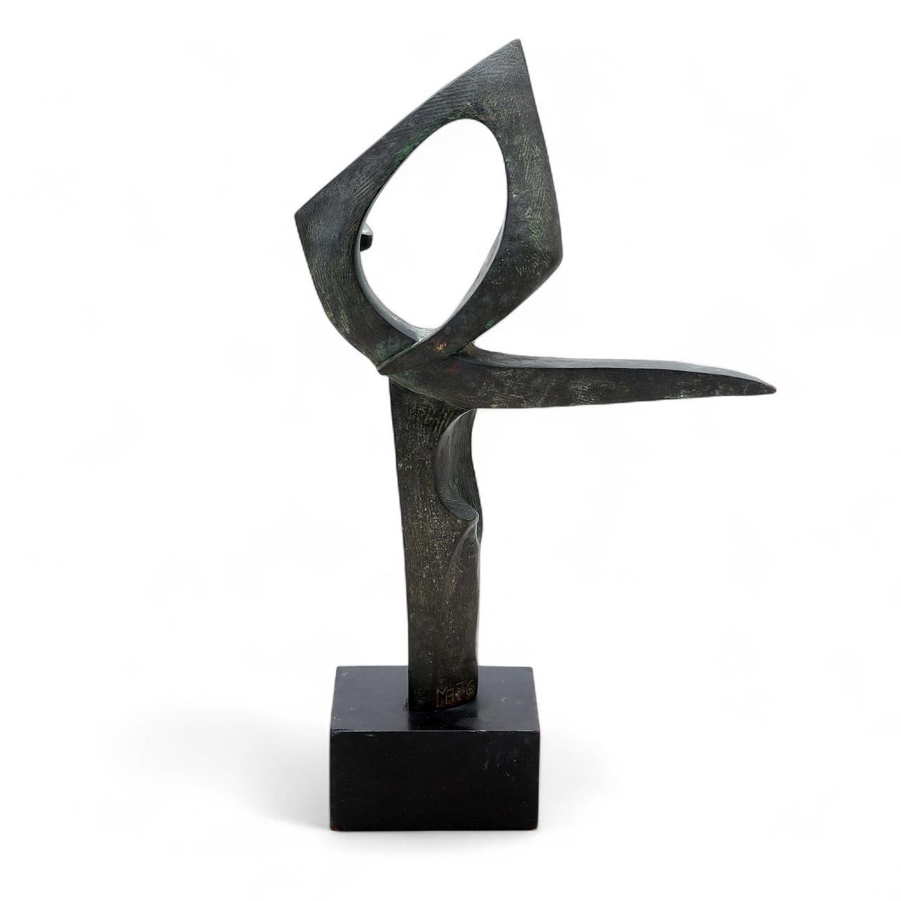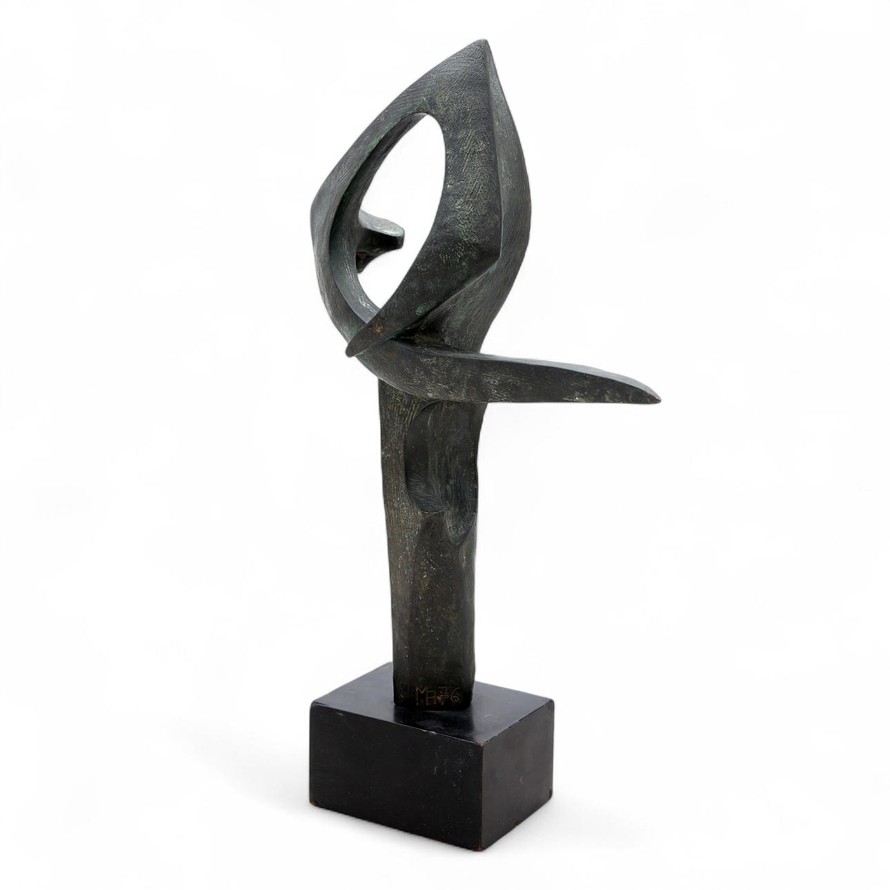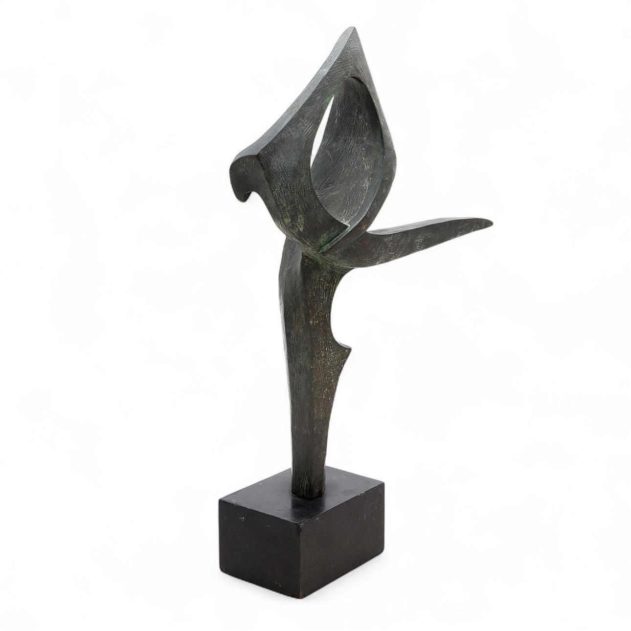 Patinerad bronsskulptur med eboniserad träbas.