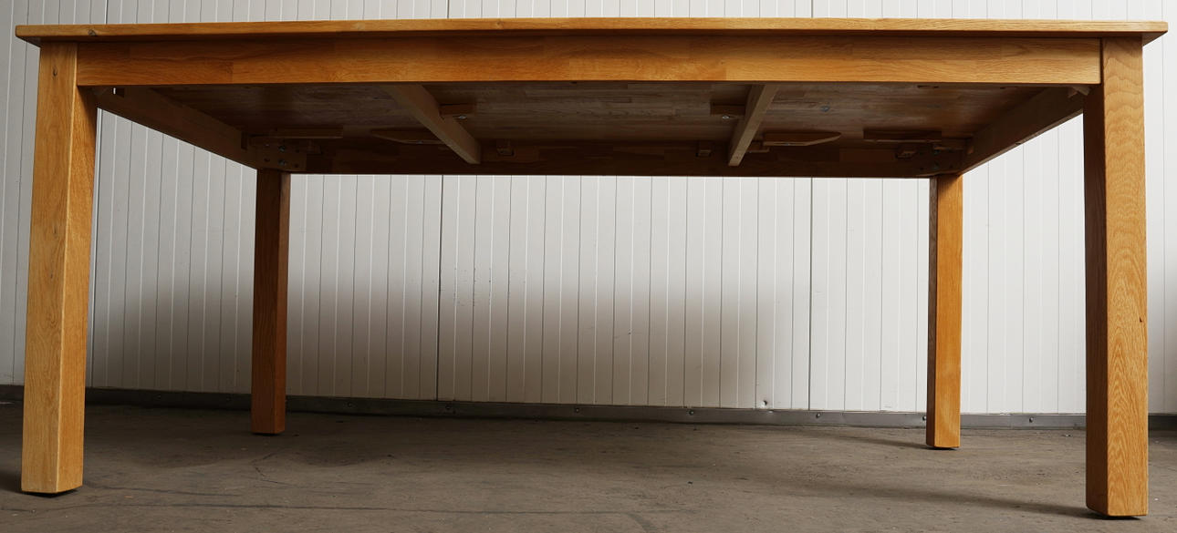 180x89.5 cm, höjd 76 cm. Längd med iläggsskiva 230 cm.