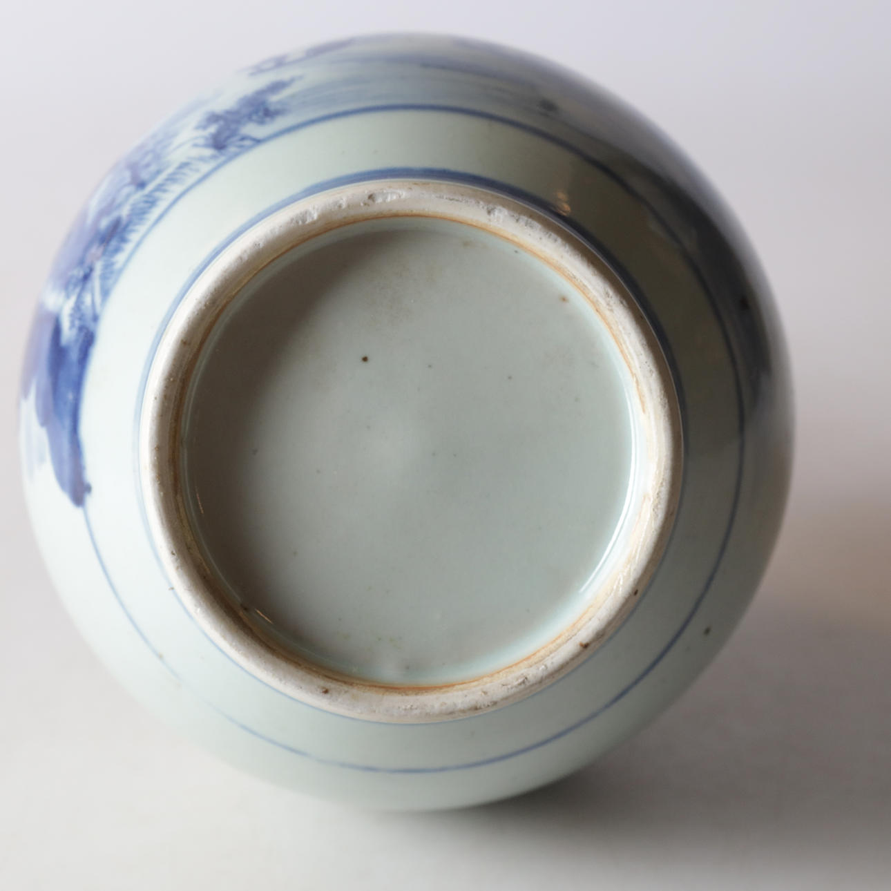 Vas med blå dekor och figurscen.
