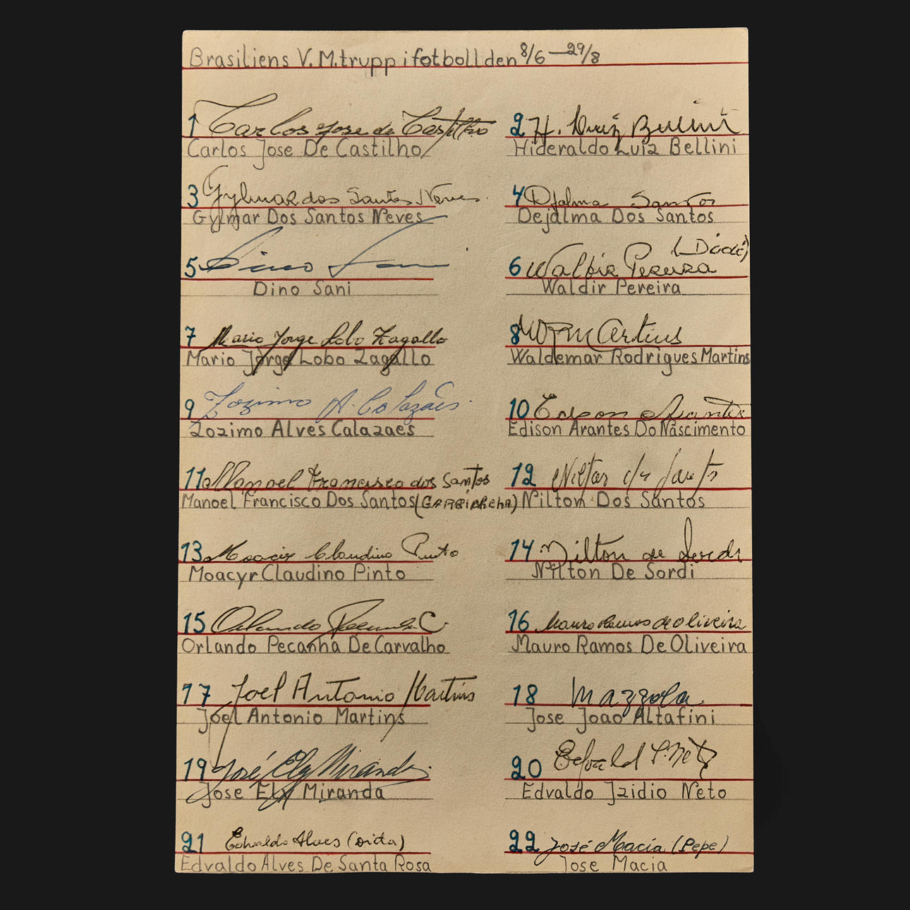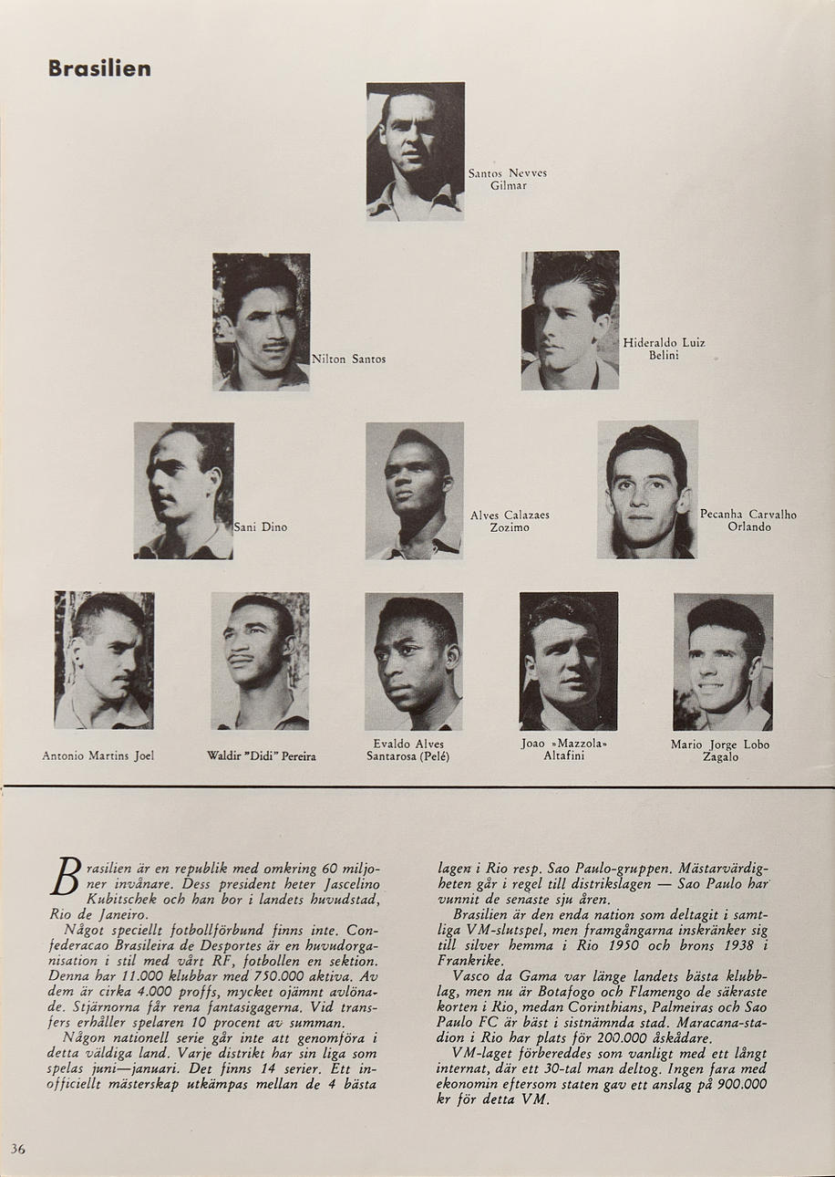 PELÉ, BRASILIEN VM-LAGET 1958, 22 autografer samt Minnesprogram.