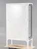 Slitage, färgbortfall, skavmärken, bitvis korrosion. Hyllplan i inrede med nagg.