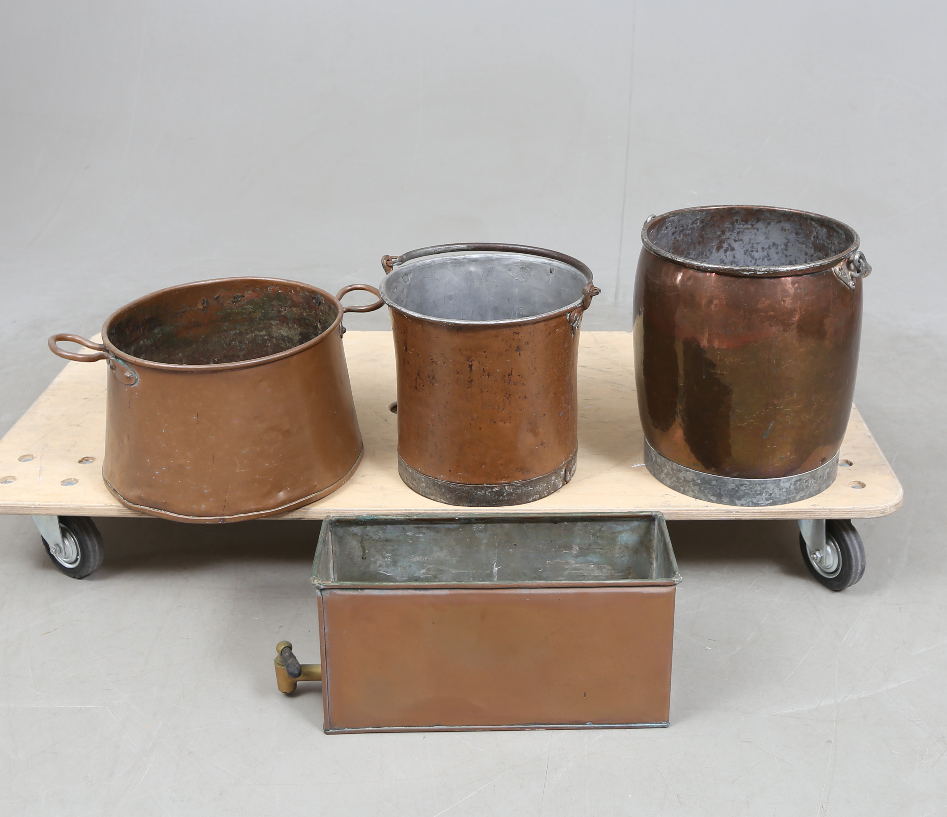 4282685. HINKAR 3 st samt VATTENRESERVOAR, koppar.