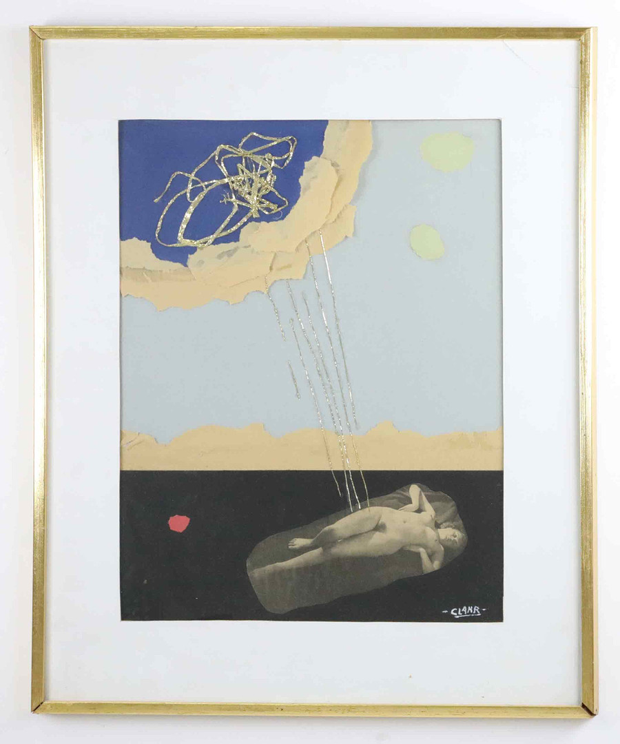 4282811. EMIL CLAHR. Collage, "Danae och guldregnet" signerad.