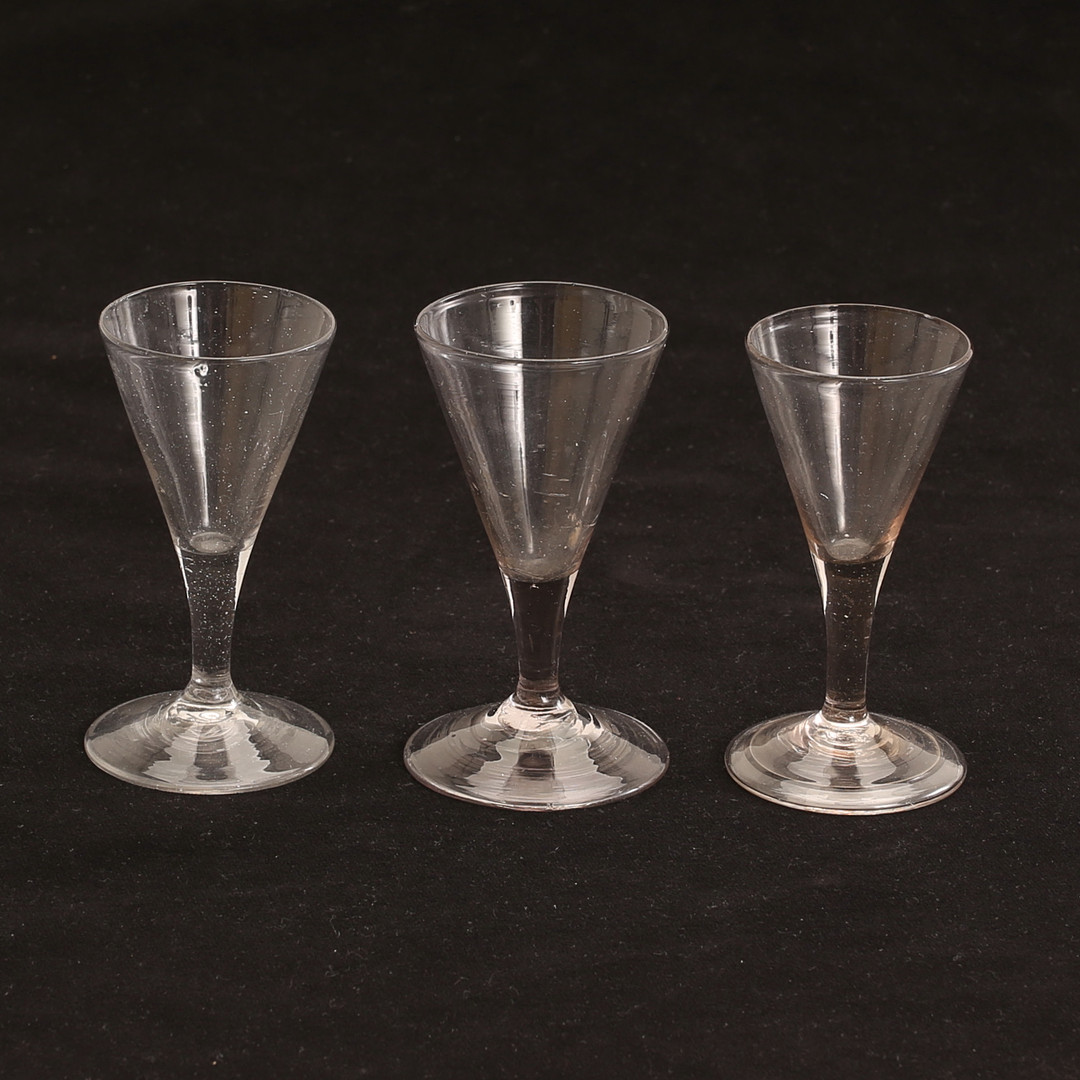 4283535. BRÄNNVINSGLAS, 3 stycken, antika.