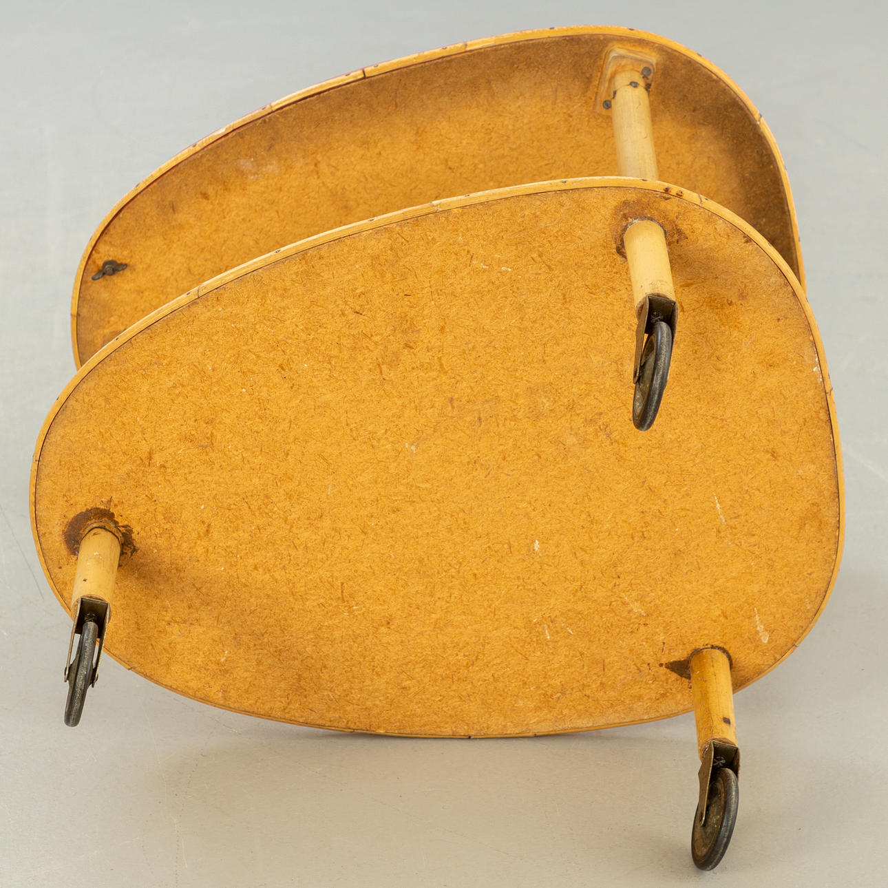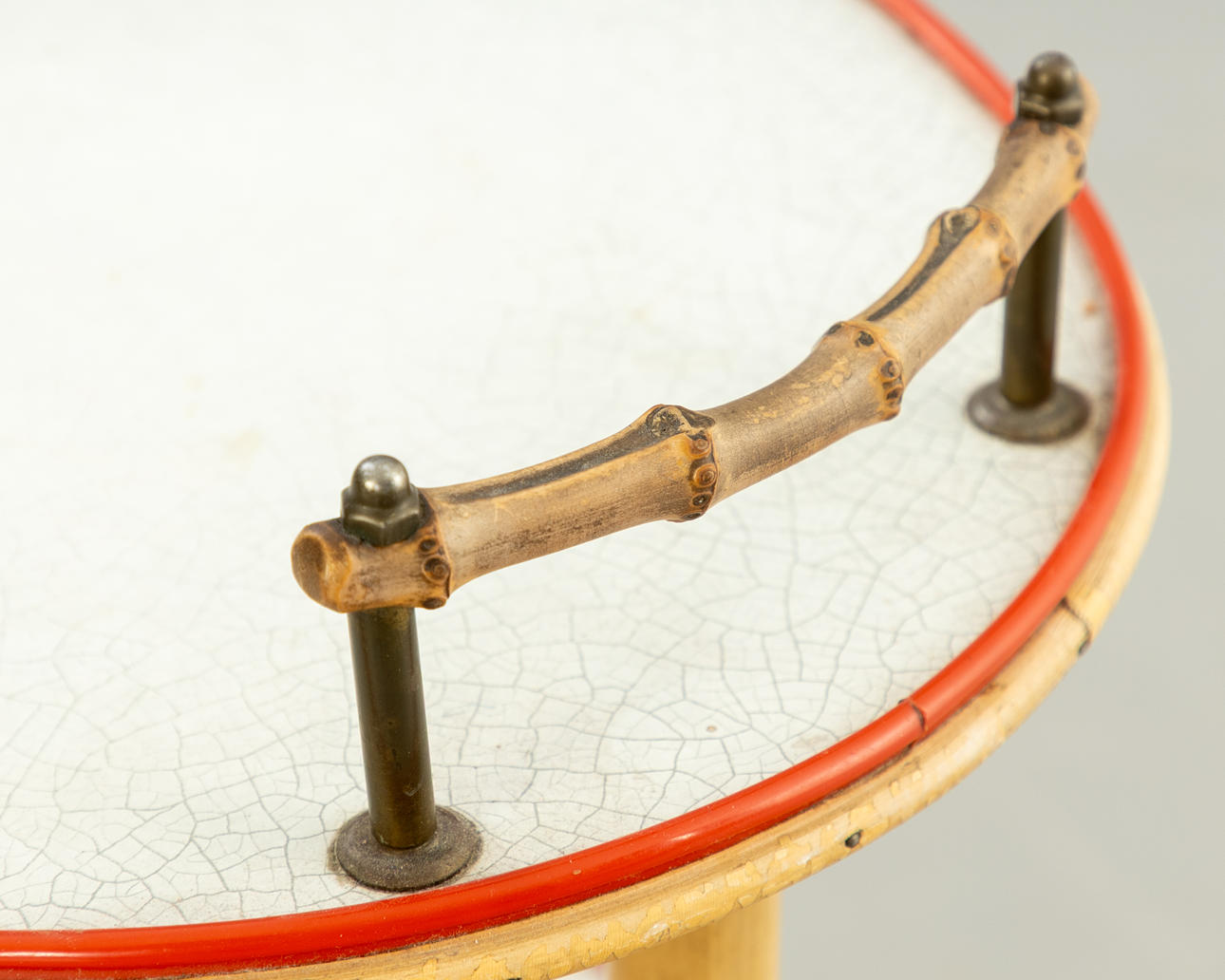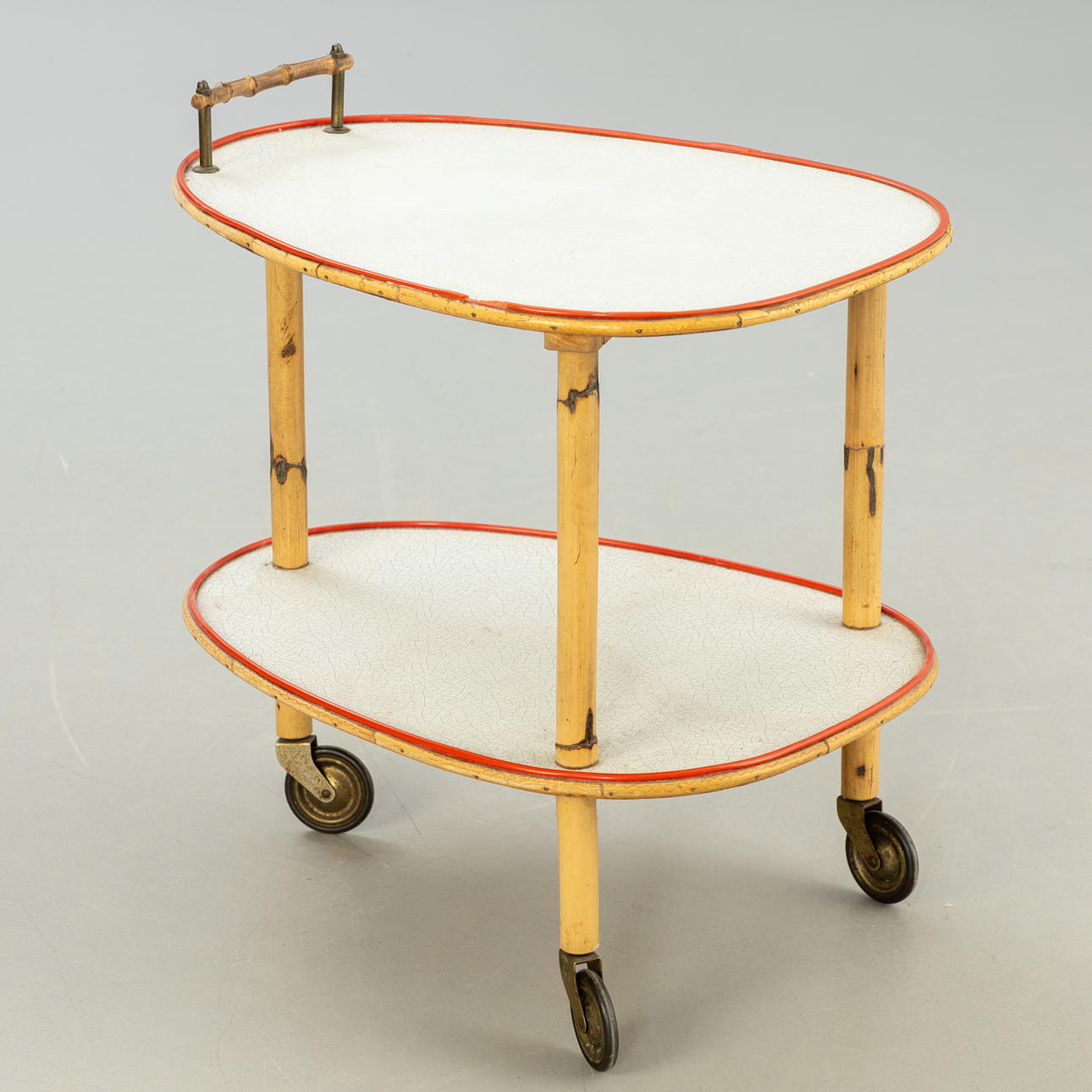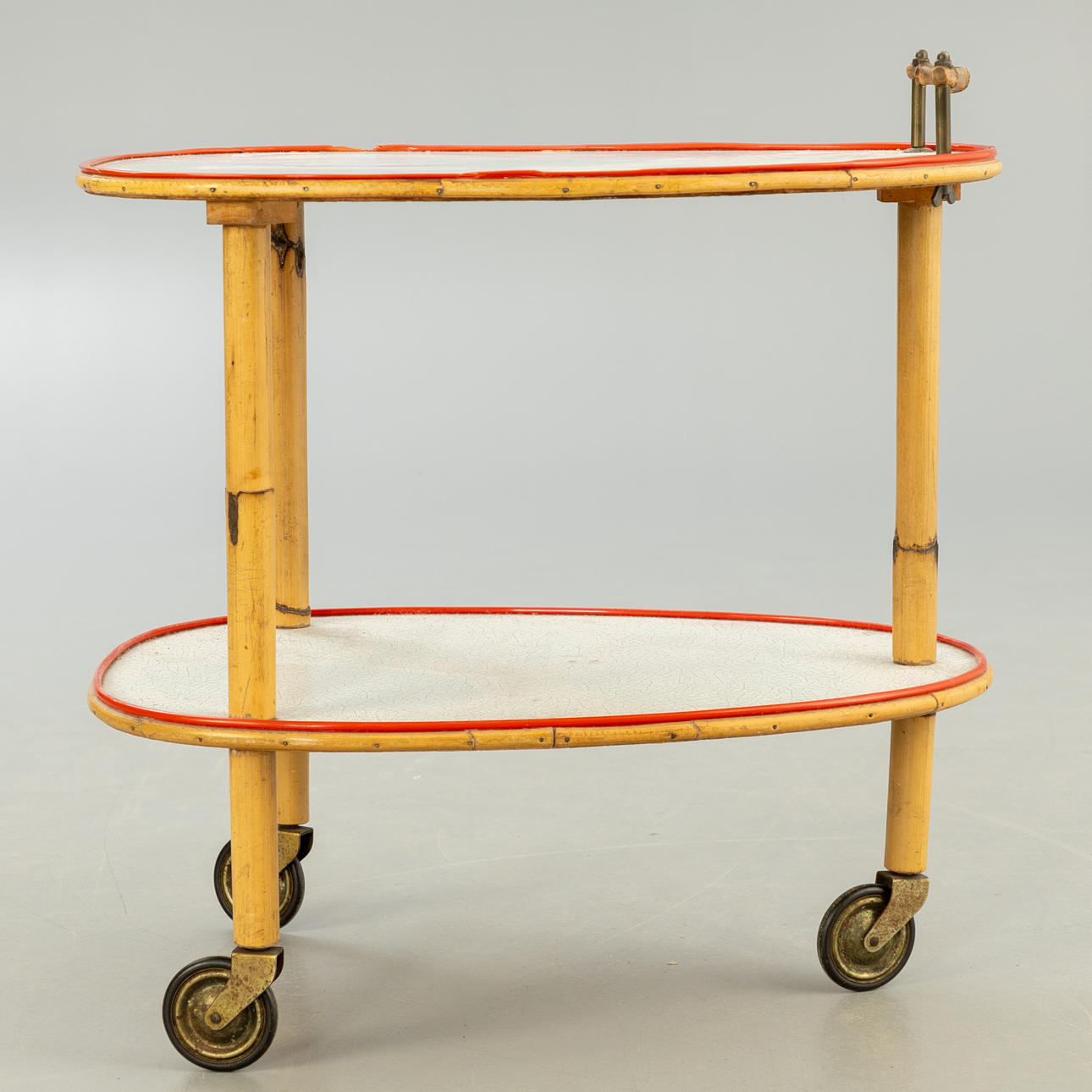 Barvagn med 2 nivåer, laminerade plattor, bambuben på mässingshjul.