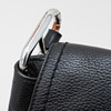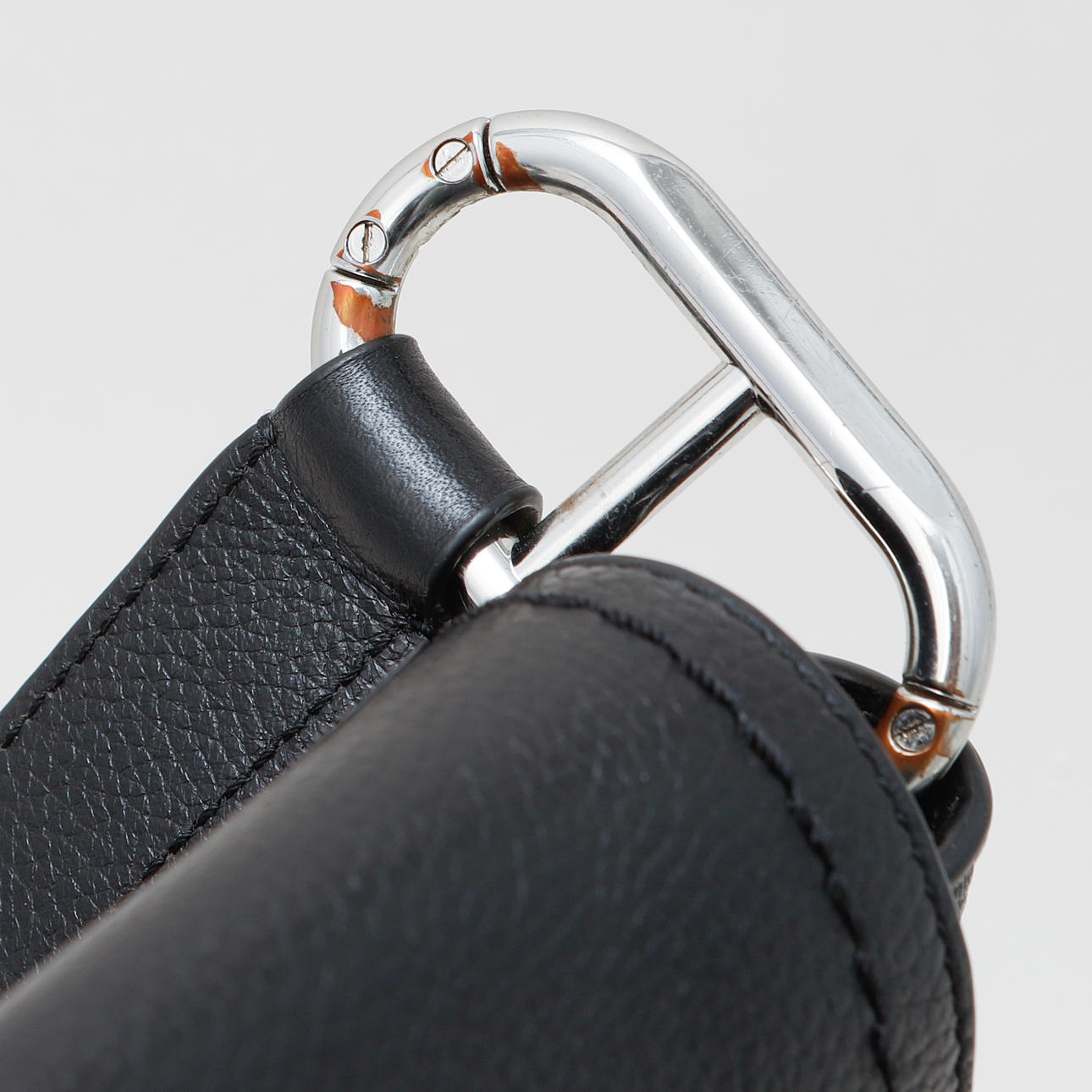 Svart läder. Detaljer i vitmetall. 25 x 8 x 25.