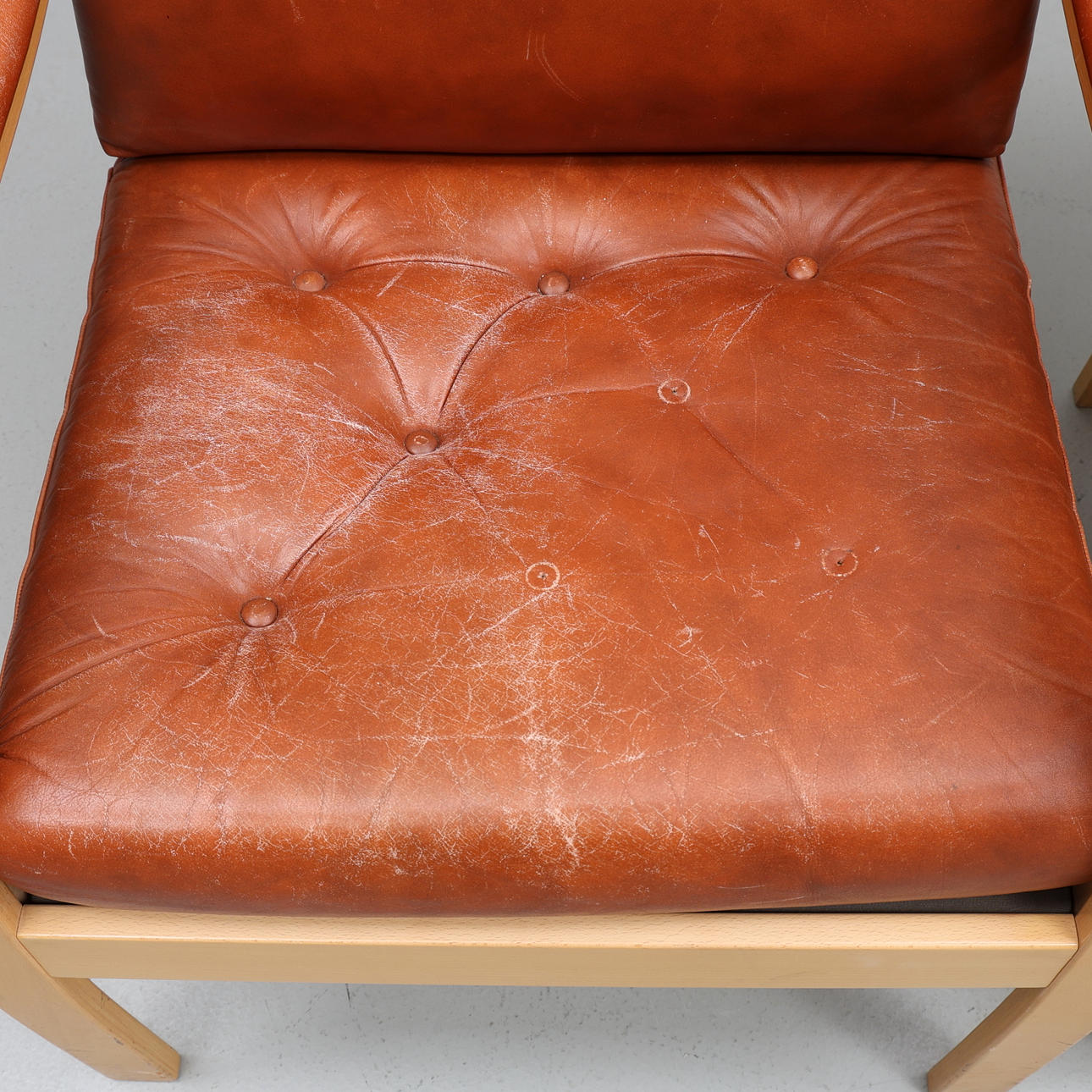Bruksslitage, avskav, märken, fläckar samt sprickor i klädsel.