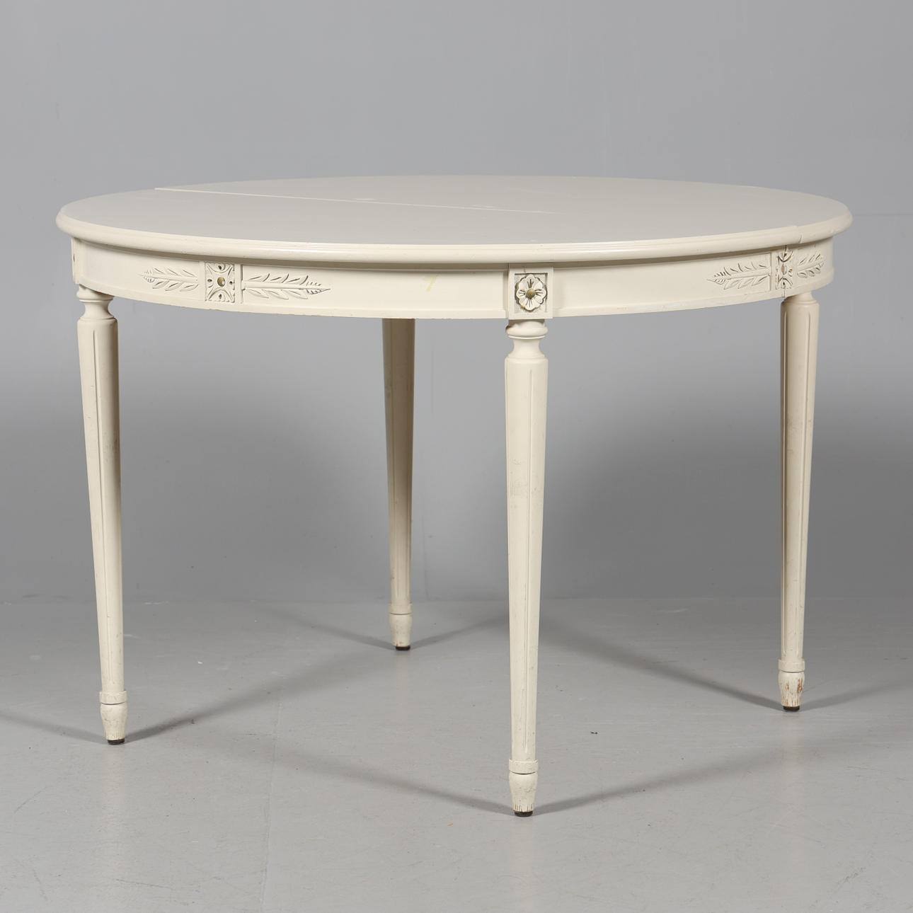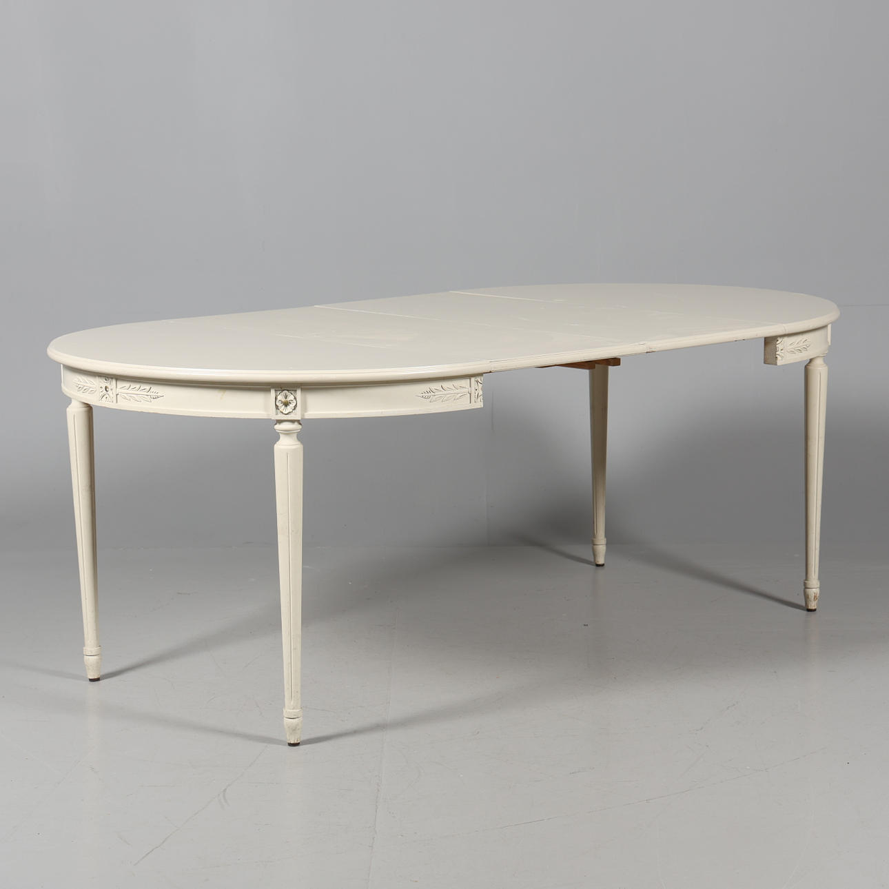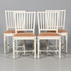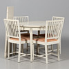 Bord med 2 st iläggsskivor: Diameter 110 cm. Längd 110 - 200 cm. Höjd 74,5 cm. 4 st stolar: Bredd 44 cm. Djup 47 cm. Höjd 86 cm. Sitthöjd 45 cm.