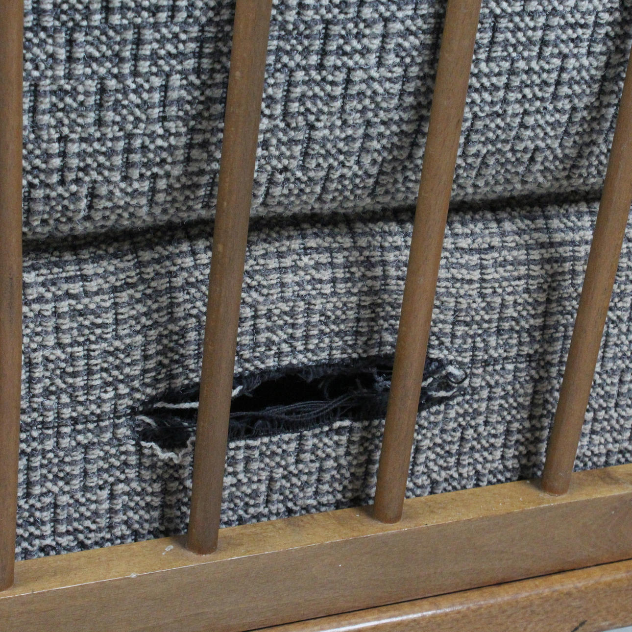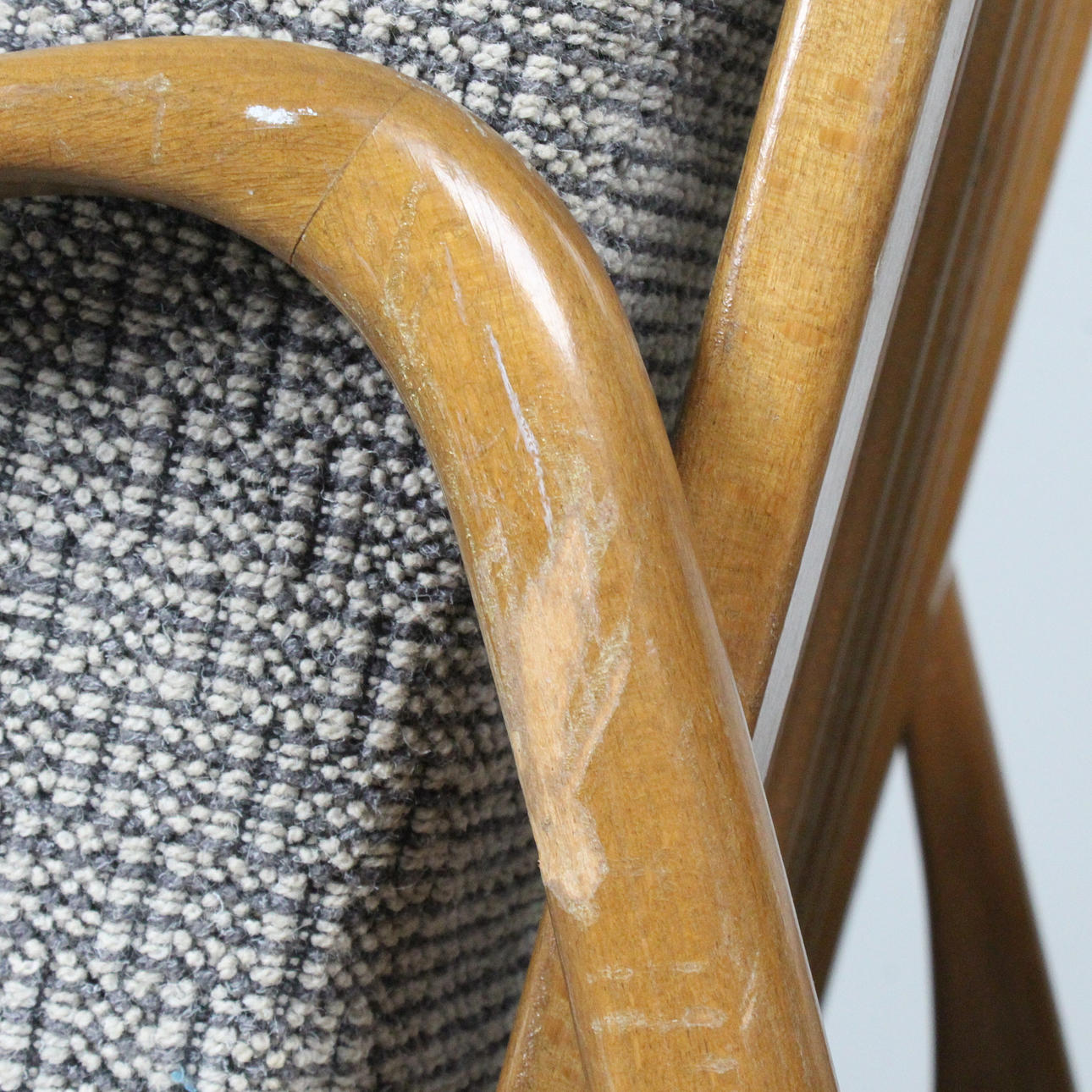 Åldersanpassade tecken på användning och gnidning, repor, gnidning och stötar i träet, överdrag delvis gnidade och smutsiga, ett hål.