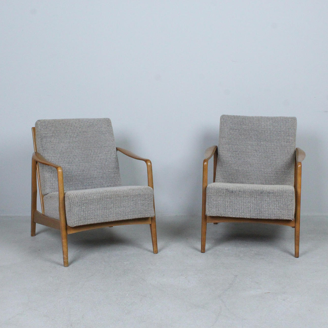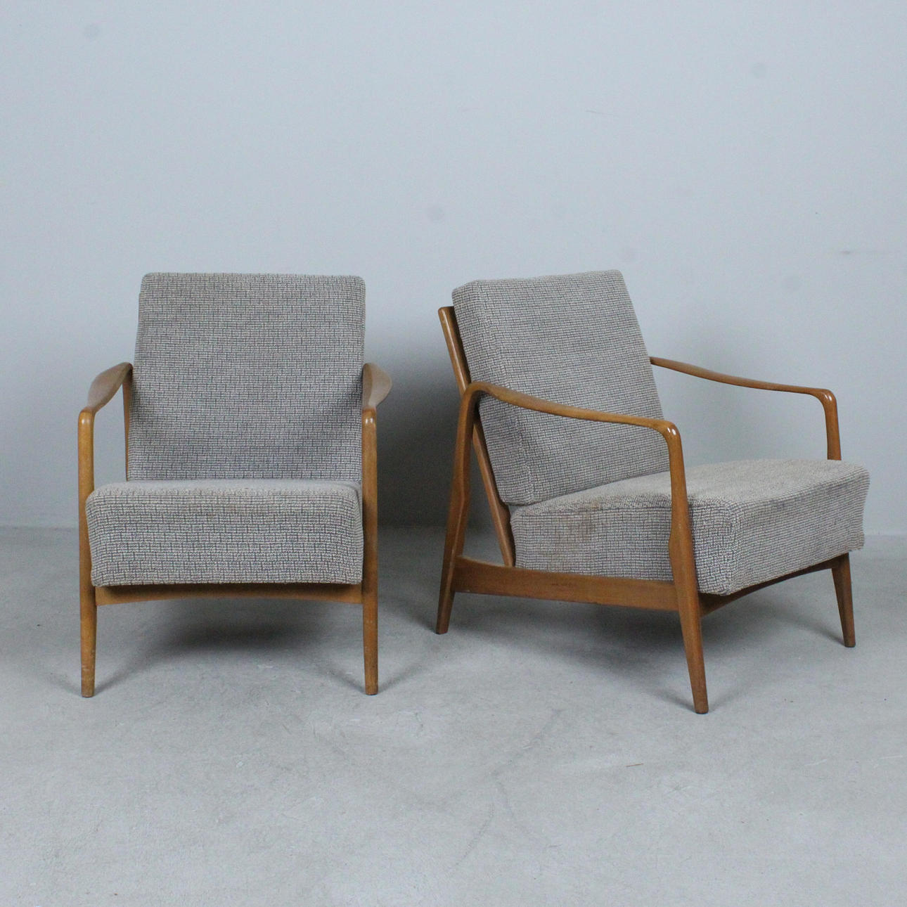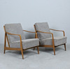 FÅTÖLJER, 2 st, Tyskland, 1970-tal, lackerad träkonstruktion, stoppade sits- och ryggkuddar,