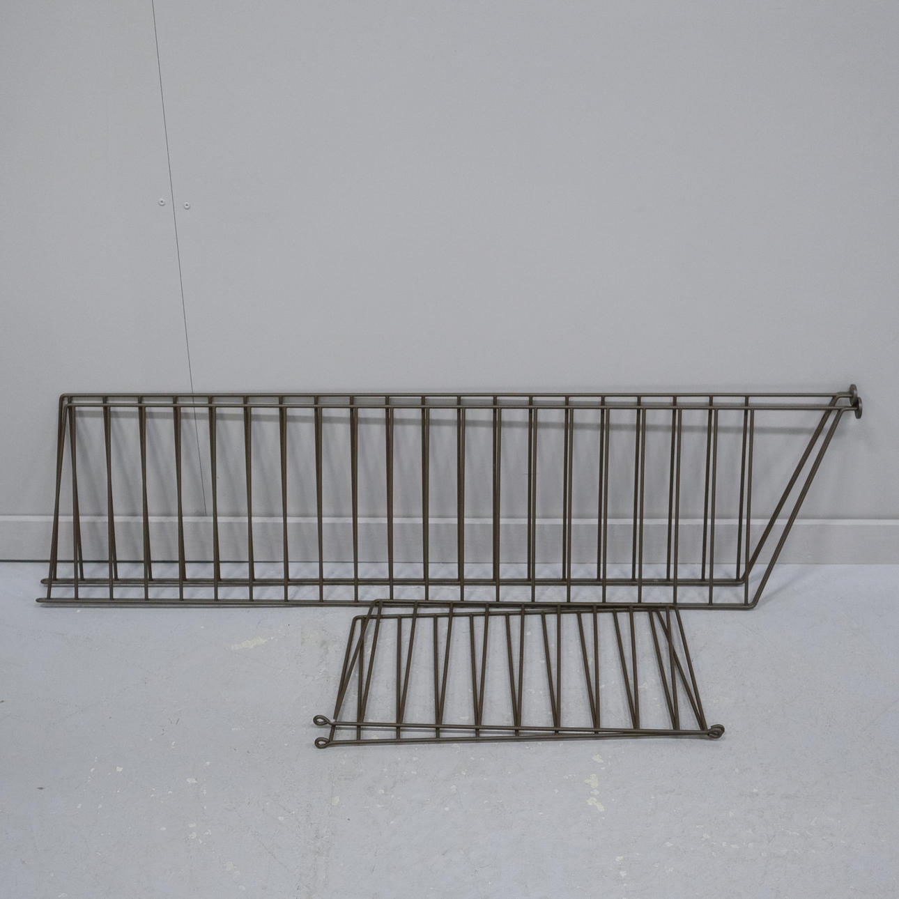 Två gavlar, höjd 111cm, två gavlar, höjd 51cm, bordsskiva med förvaringslåda, mått 78x58cm, hylla, mått 78x30cm, list, mått 78x4,5cm, medföljande tre förvaringslådor.