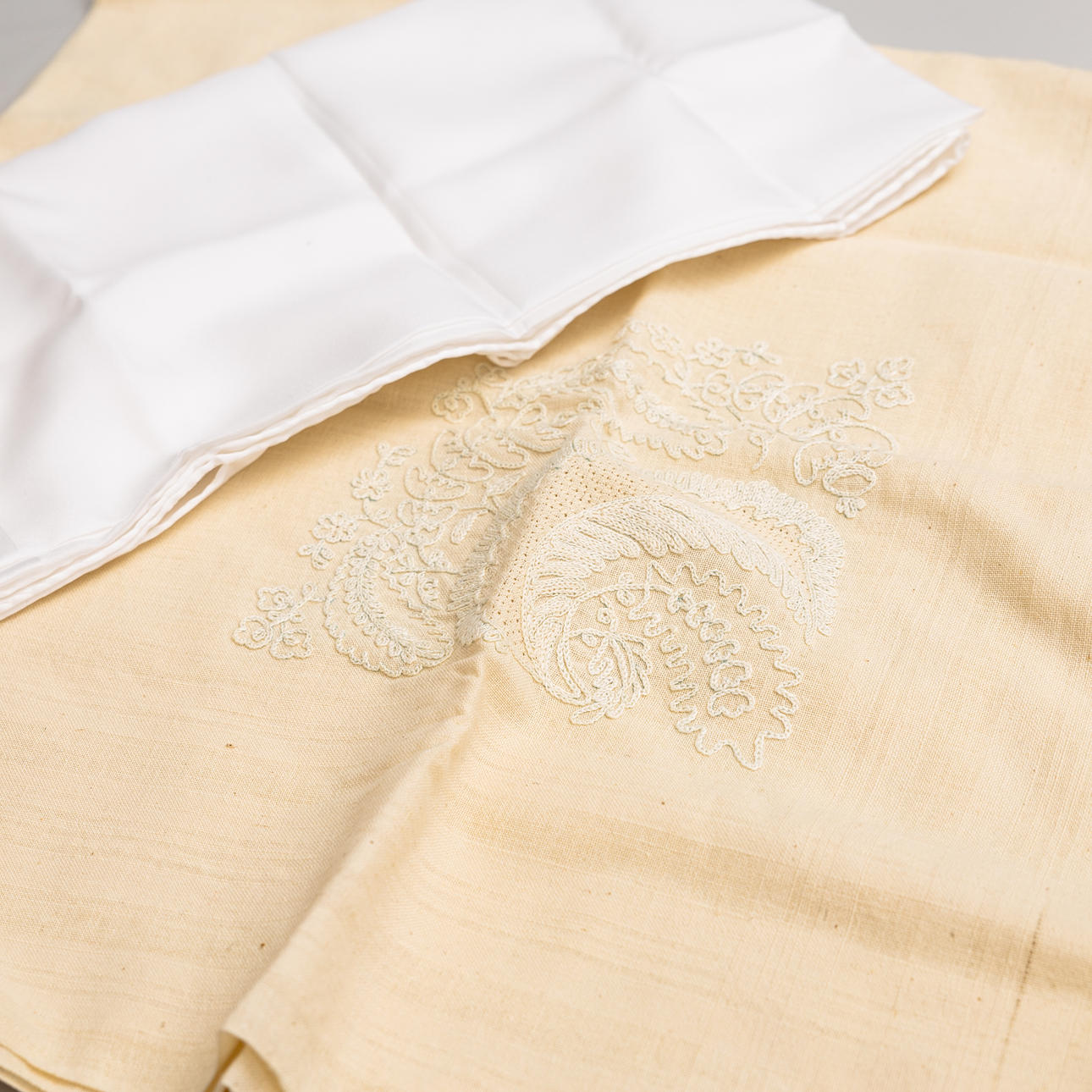 Sjal, broderad, ca 90 x 90 cm.