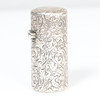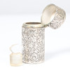 London 1884 av Samson Mordan, med ledig kartong upptill, bladgravyr på kroppen, med glaspropp, 5,5 cm lång.