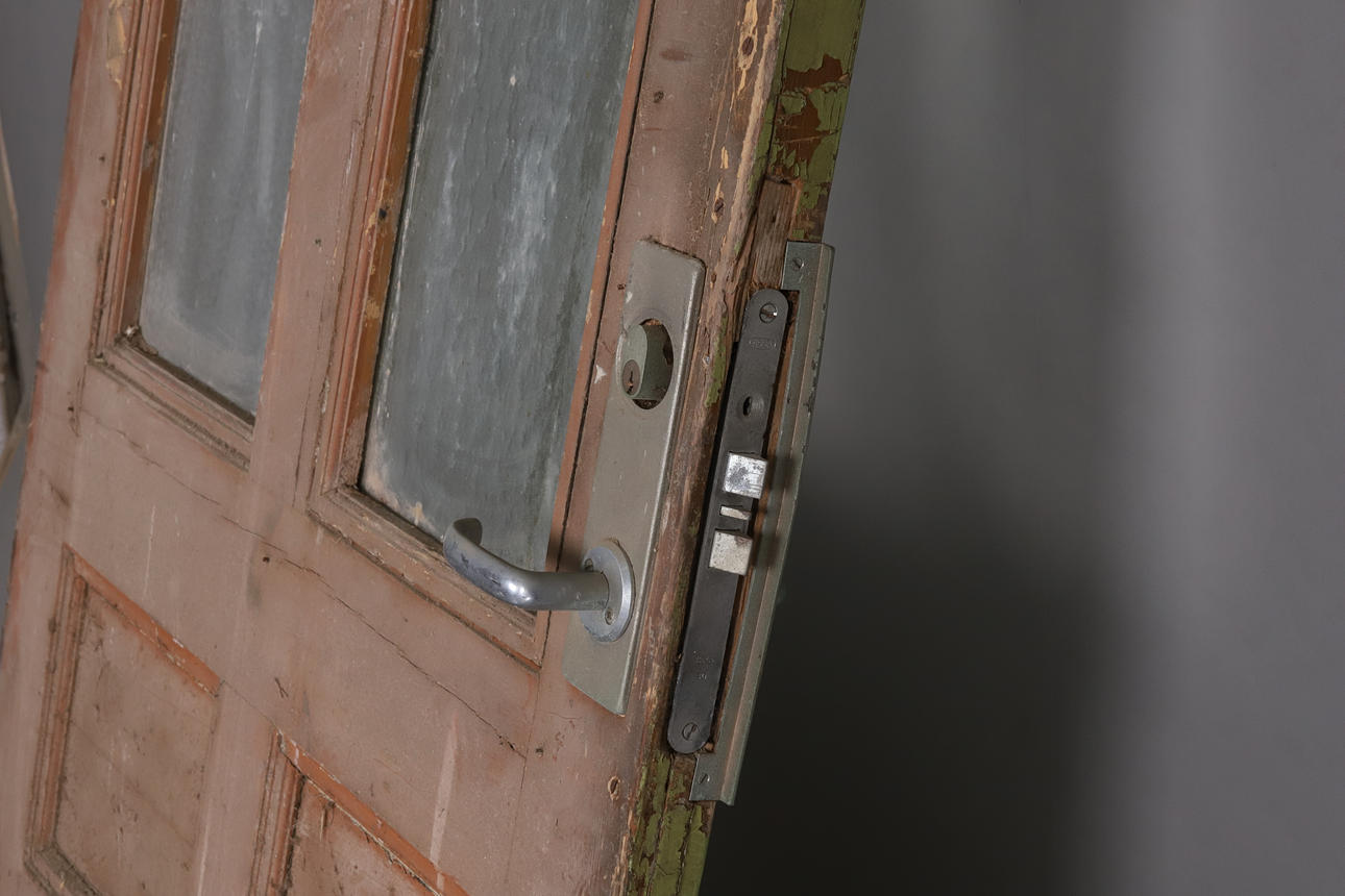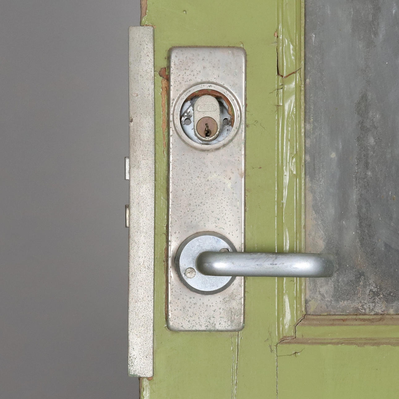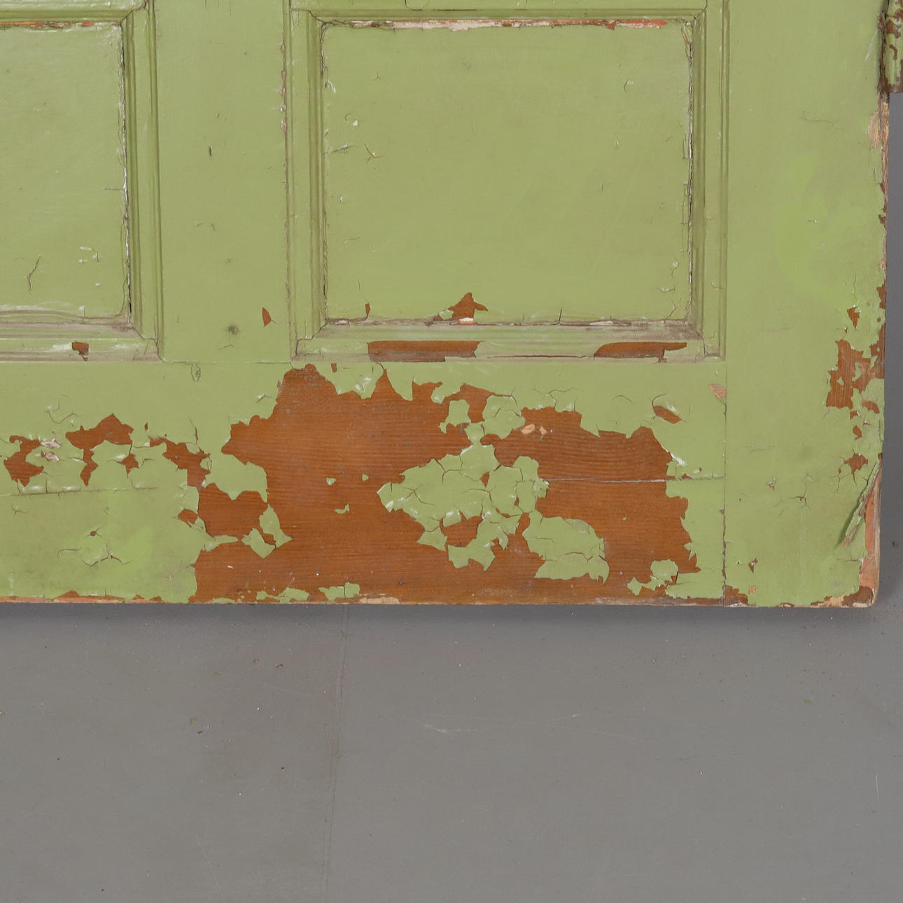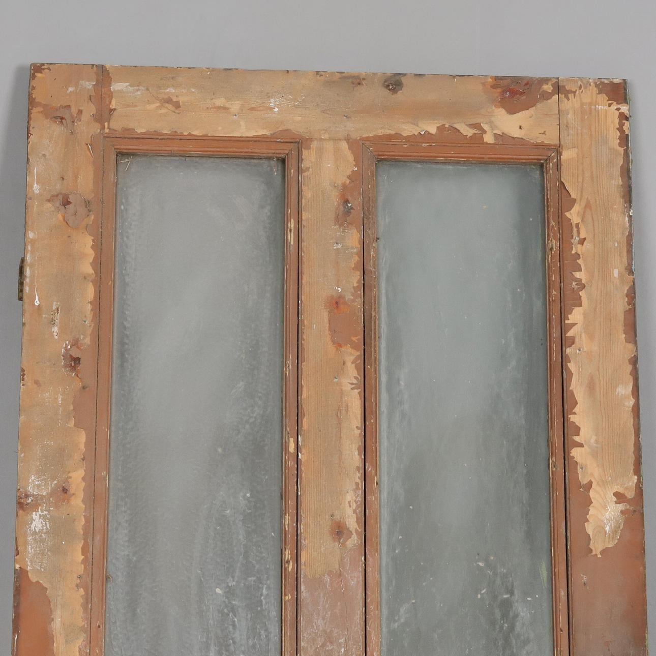 Utan karm, sliten med flagnad färg.