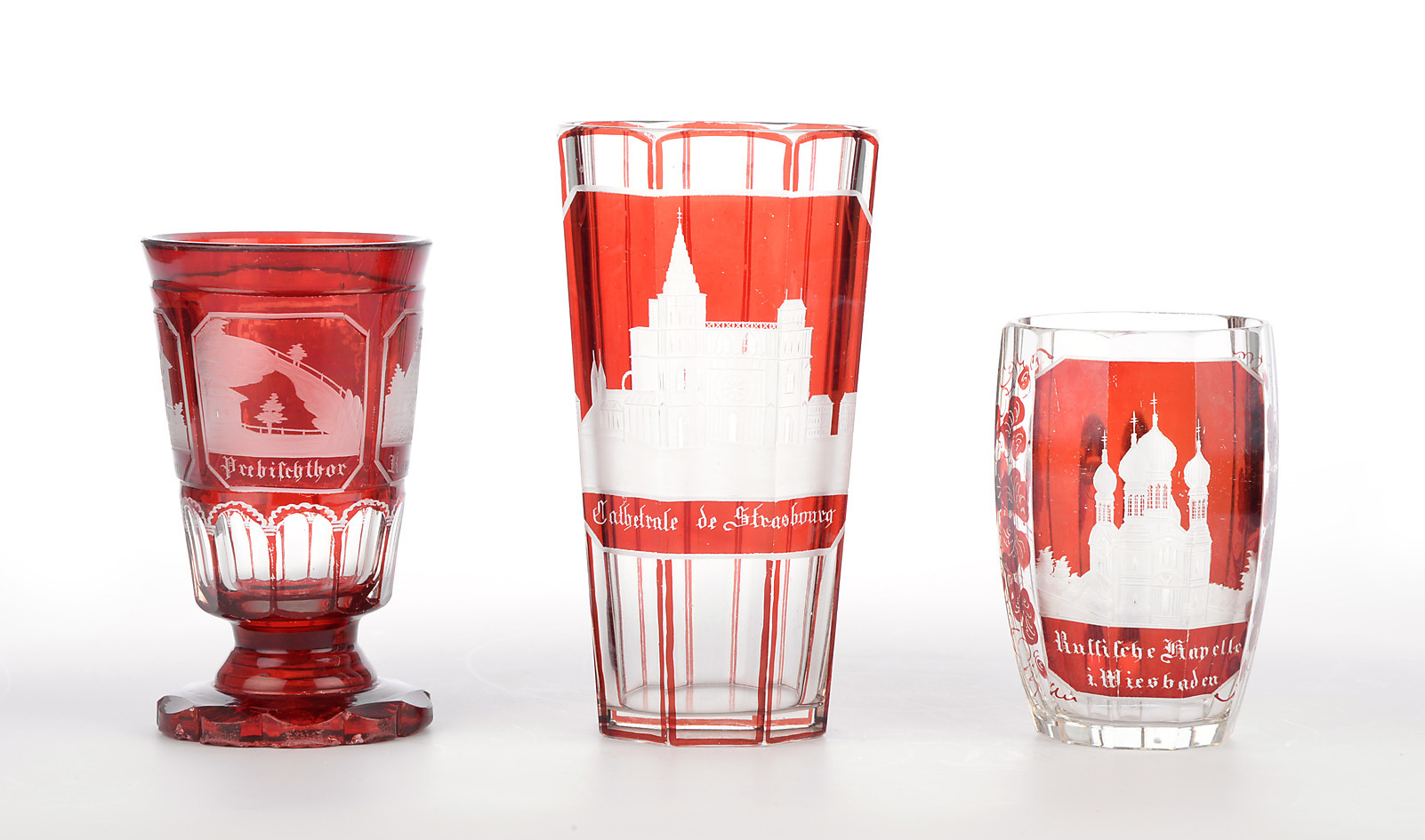 429138. GLASBÄGARE, dekorerade, 3 st.