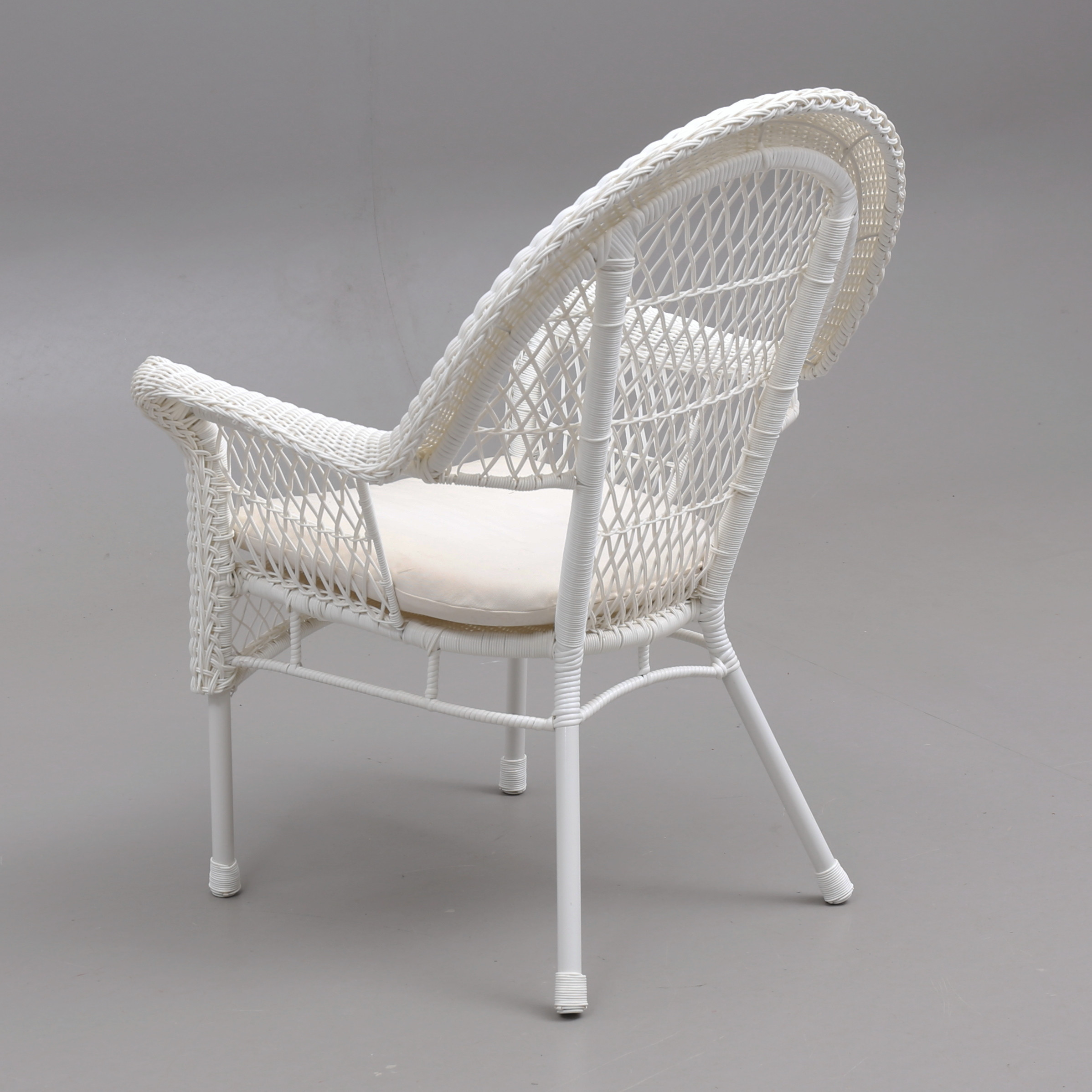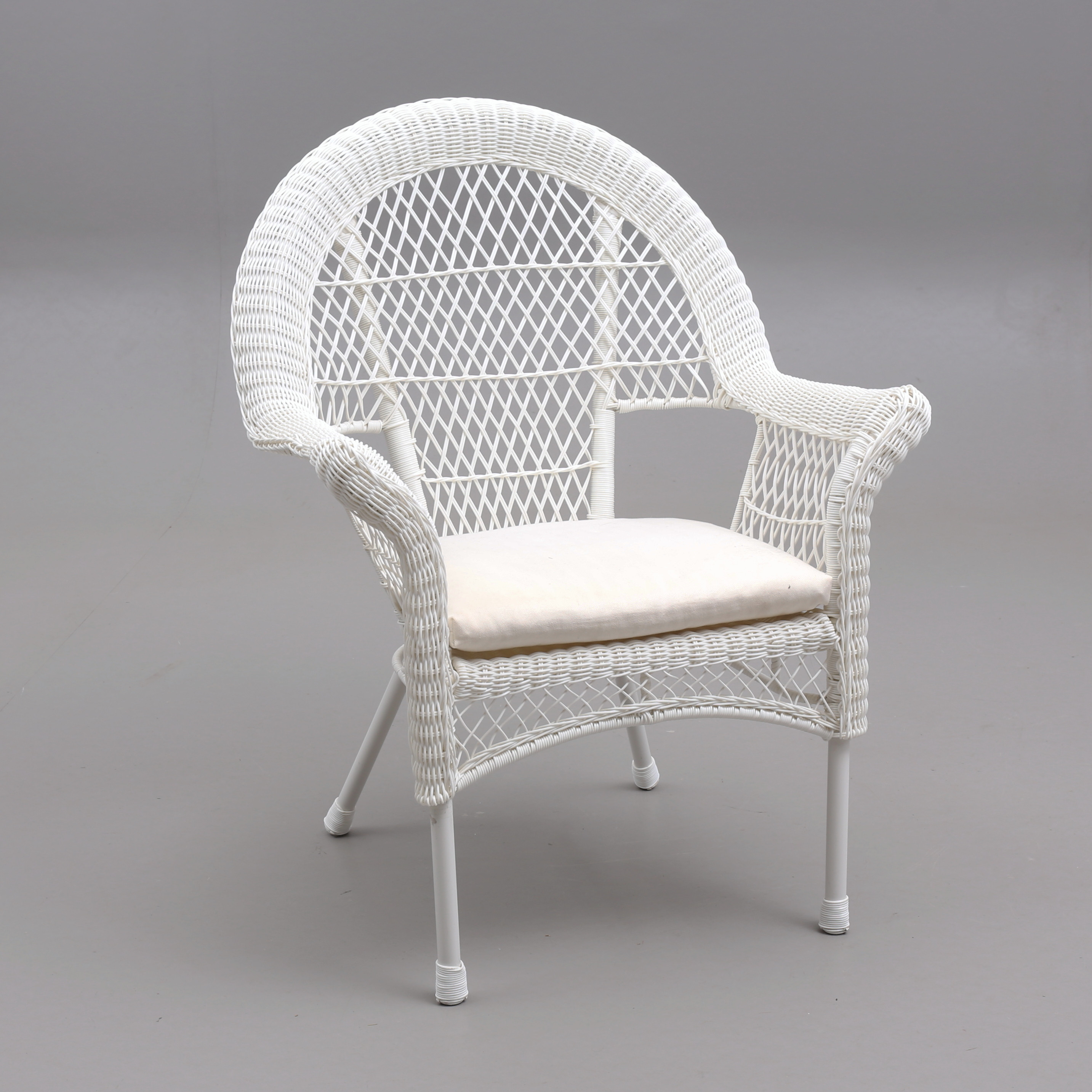 4291931. KORGSTOL, vit konstrotting/stålrör, IKEA.