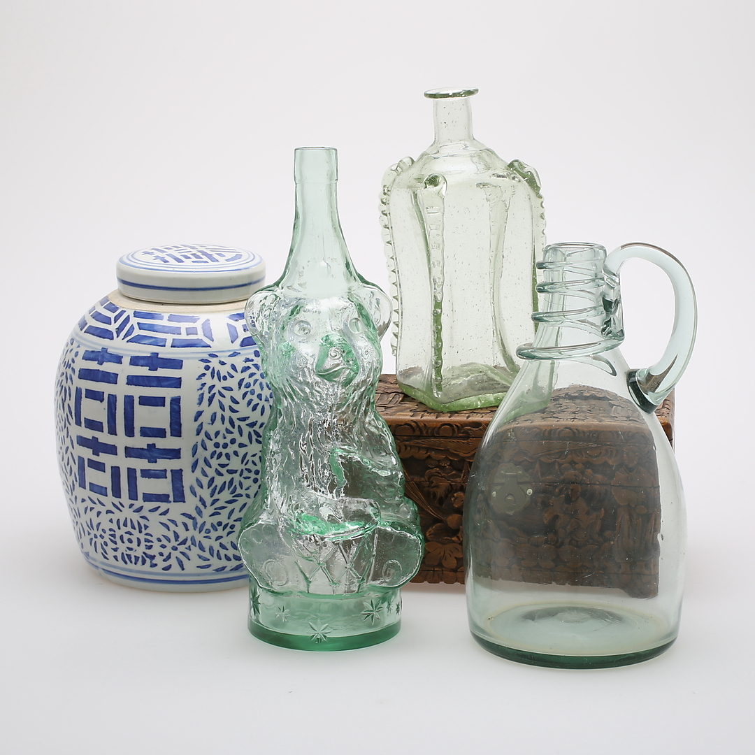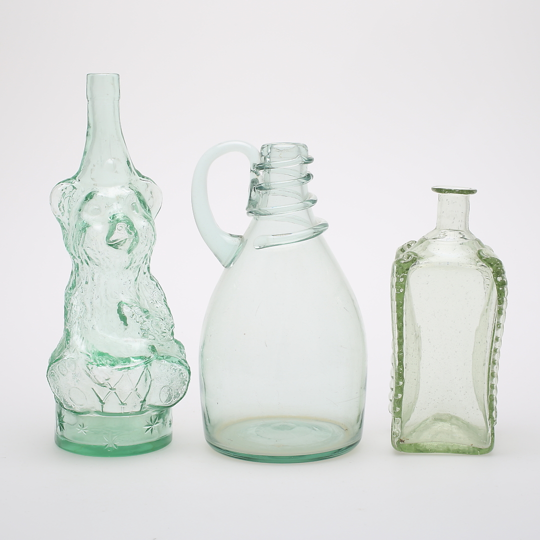429293. FLASKOR, 3 st, BOJAN, TRÄSKRIN, 1800- och 1900-tal.