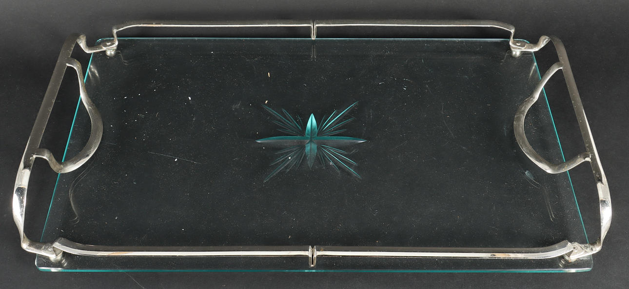 4293209. BRICKA slipat glas med metalldetaljer.