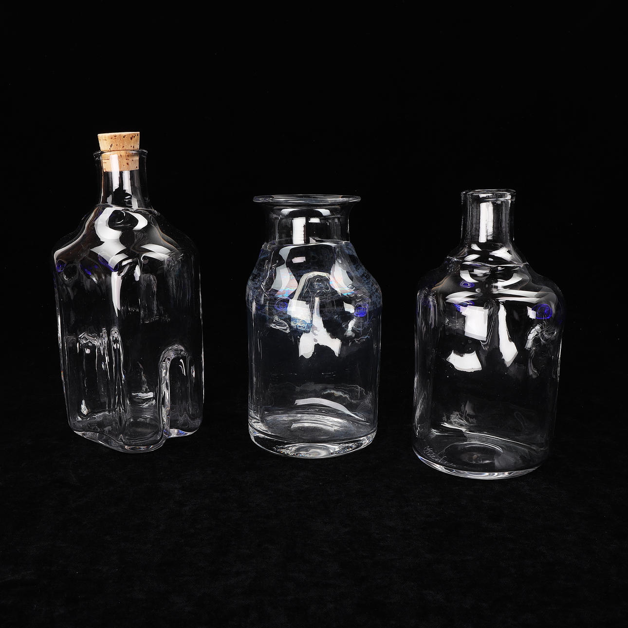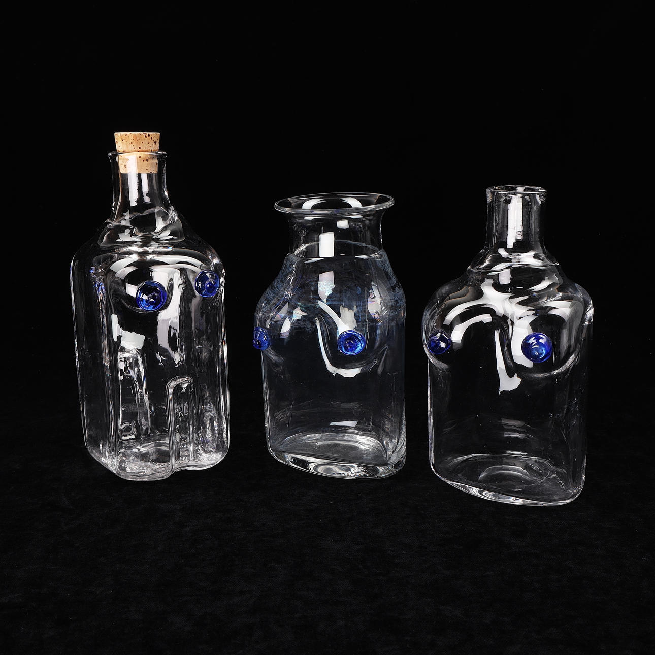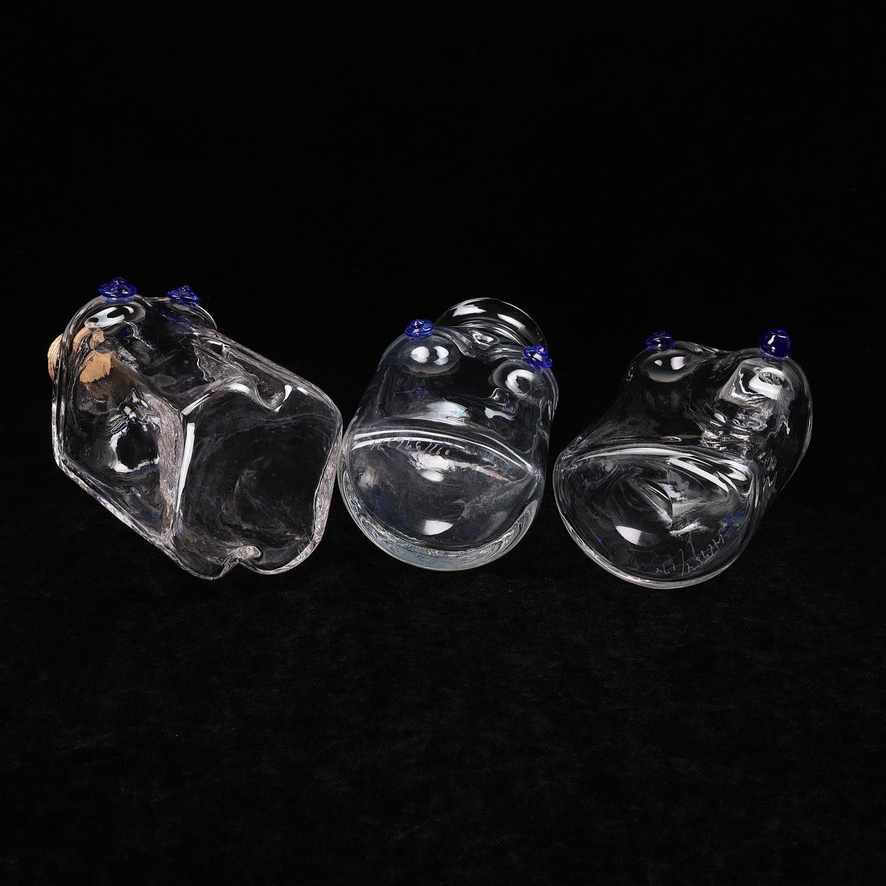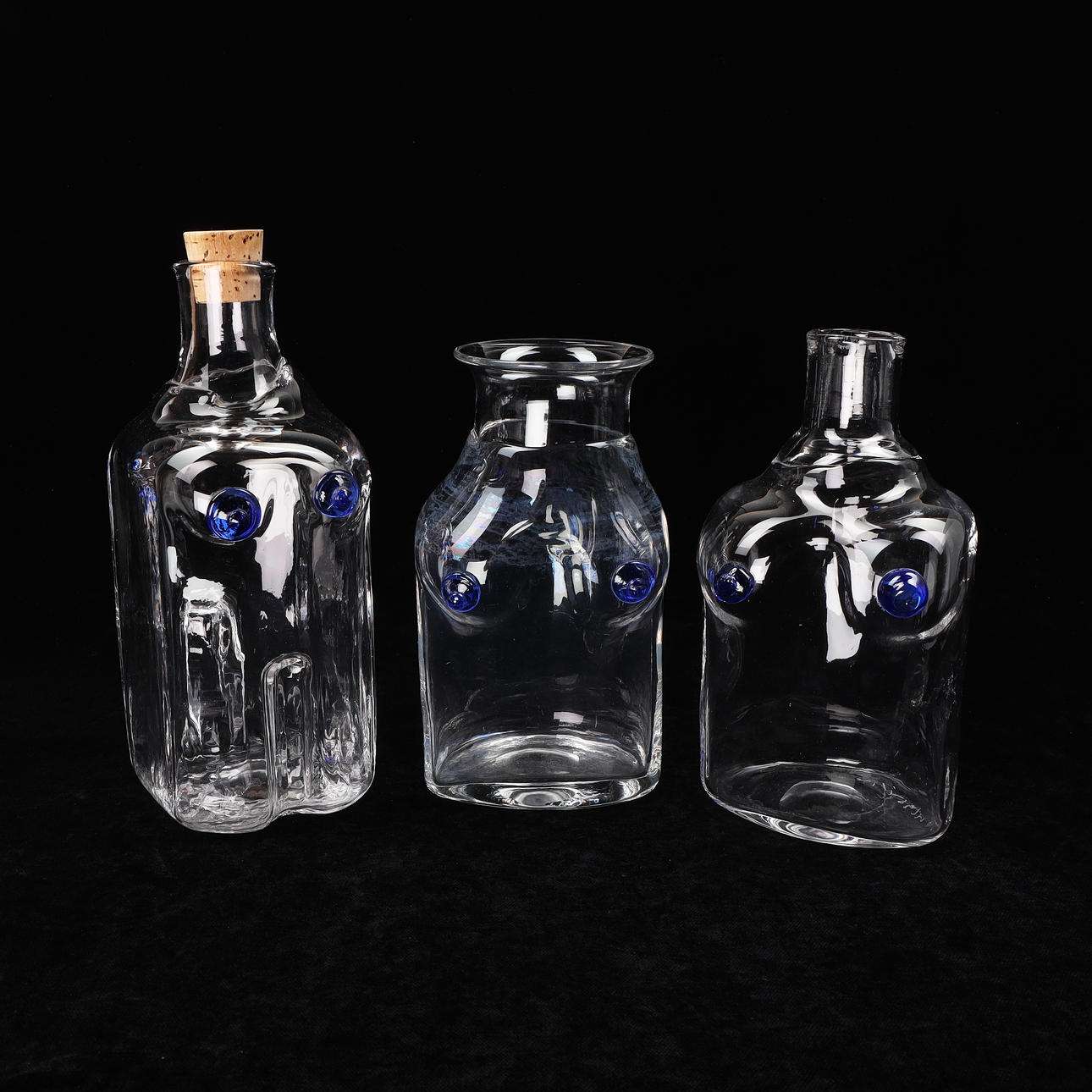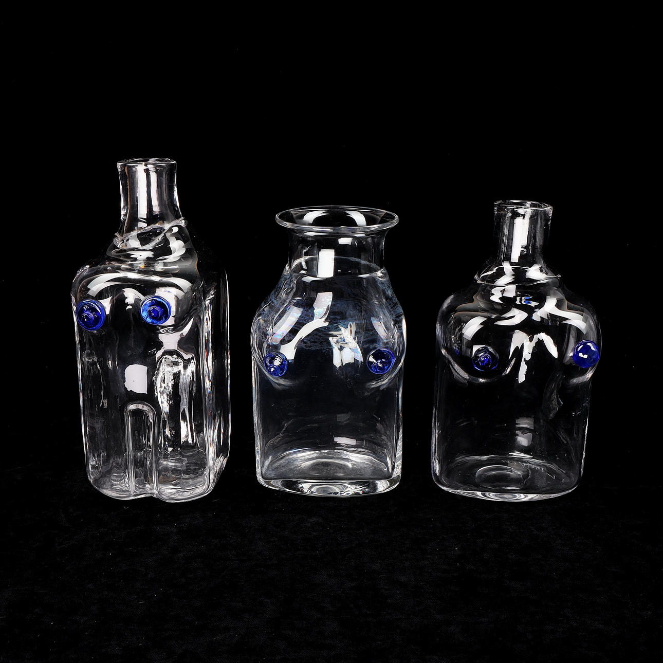 4294237. ERIK HÖGLUND. Flaskor, 3 st, glas, Boda, signerade.