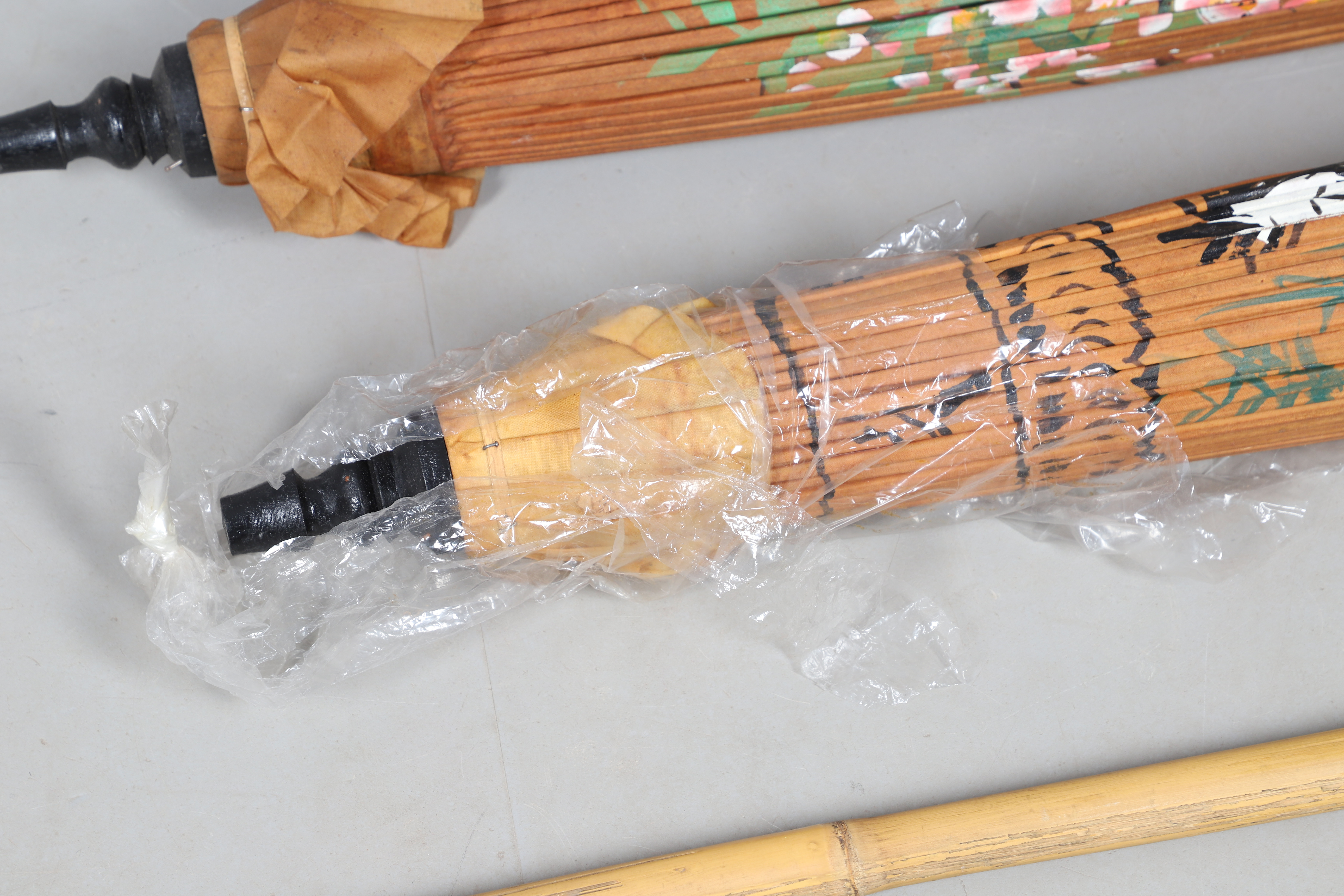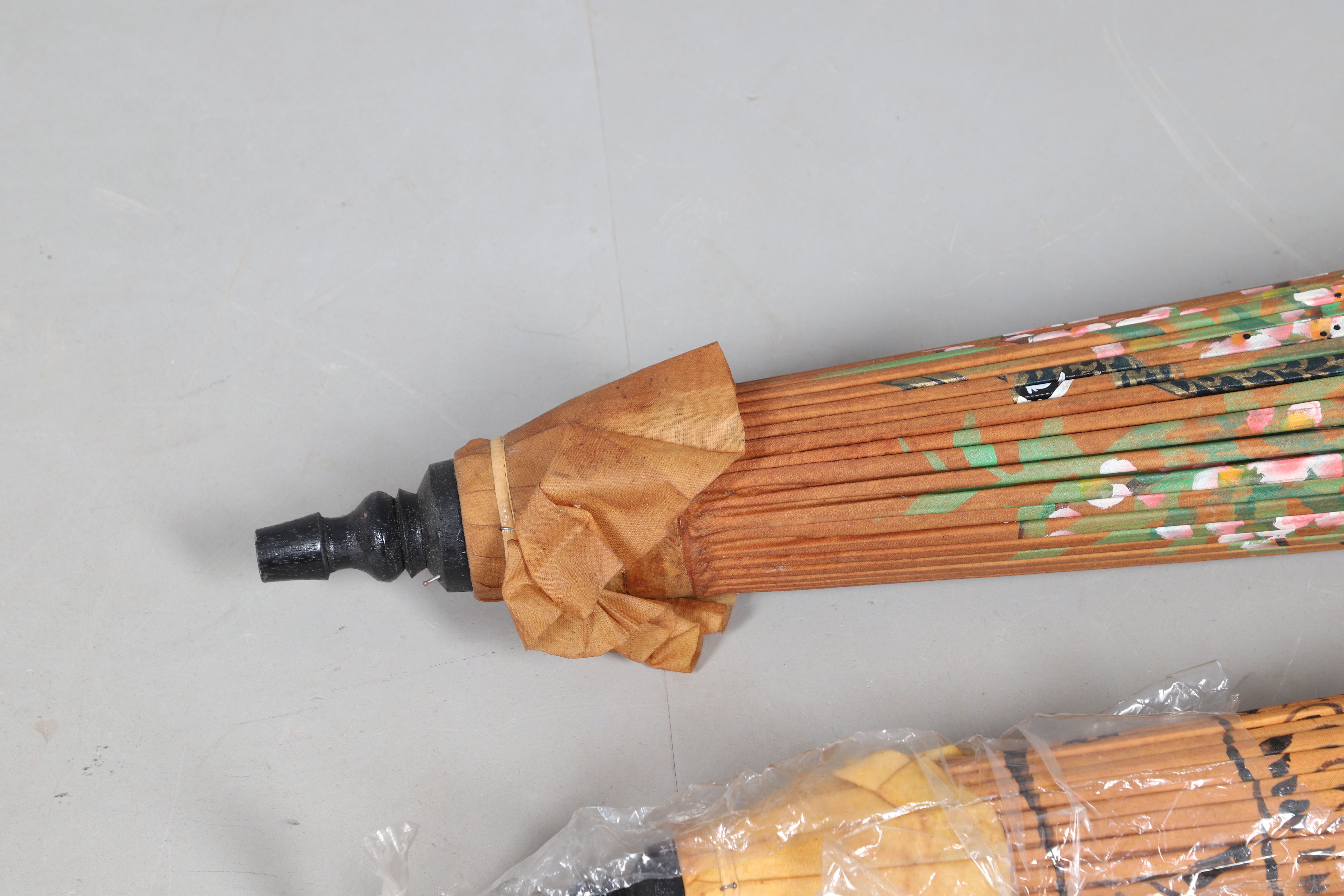 4295498. TVÅ ORIENTALISKA PARASOLLER/ PARAPLYER.