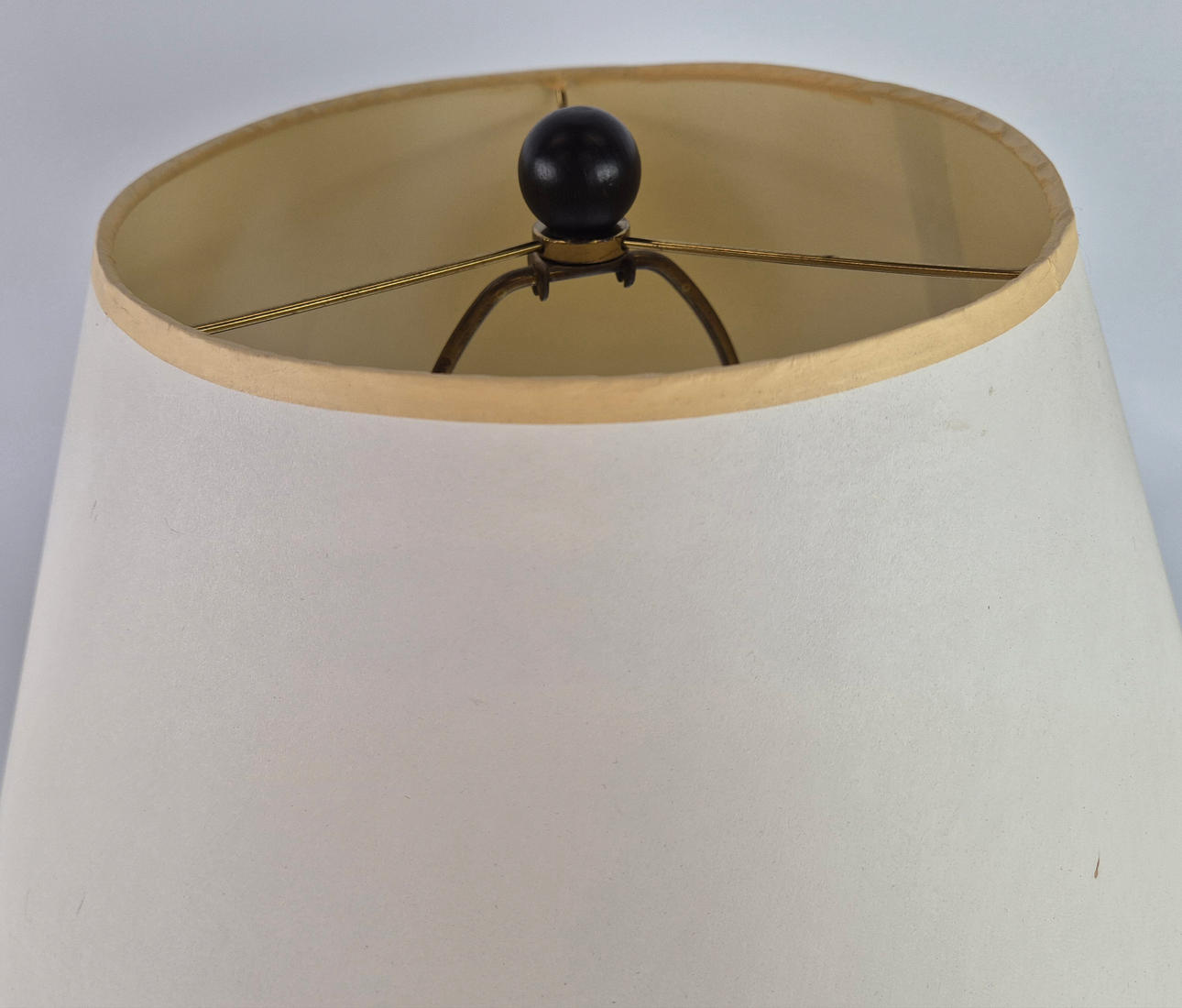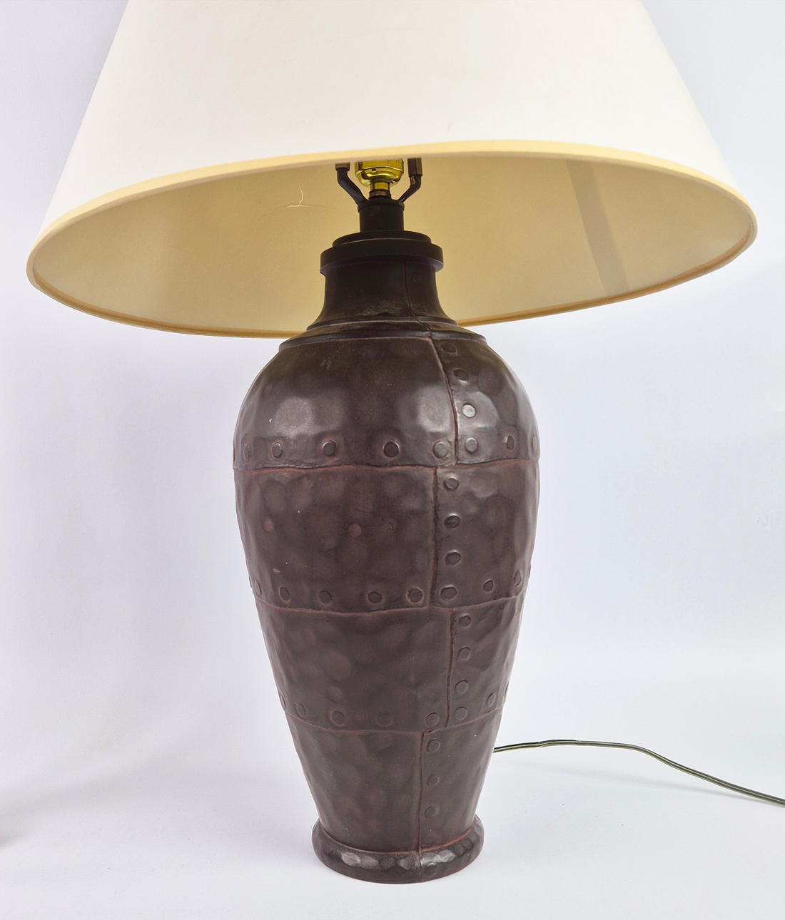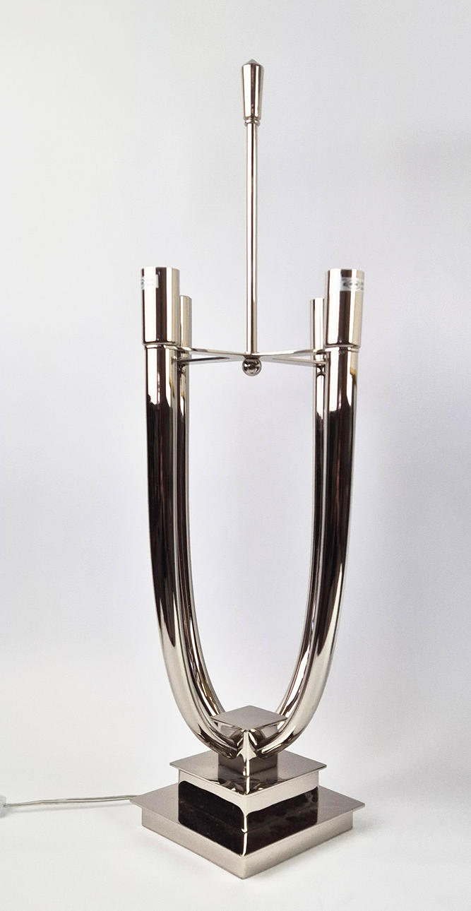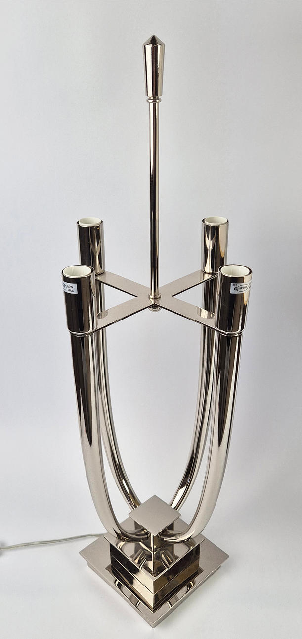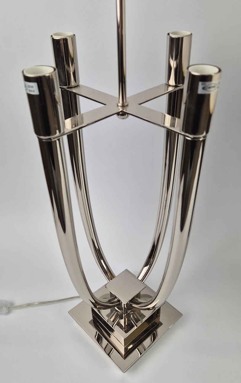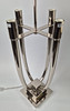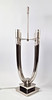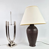 en modern kromlampa, 67cm H, tillsammans med en indisk metalllampa, 72cm H.