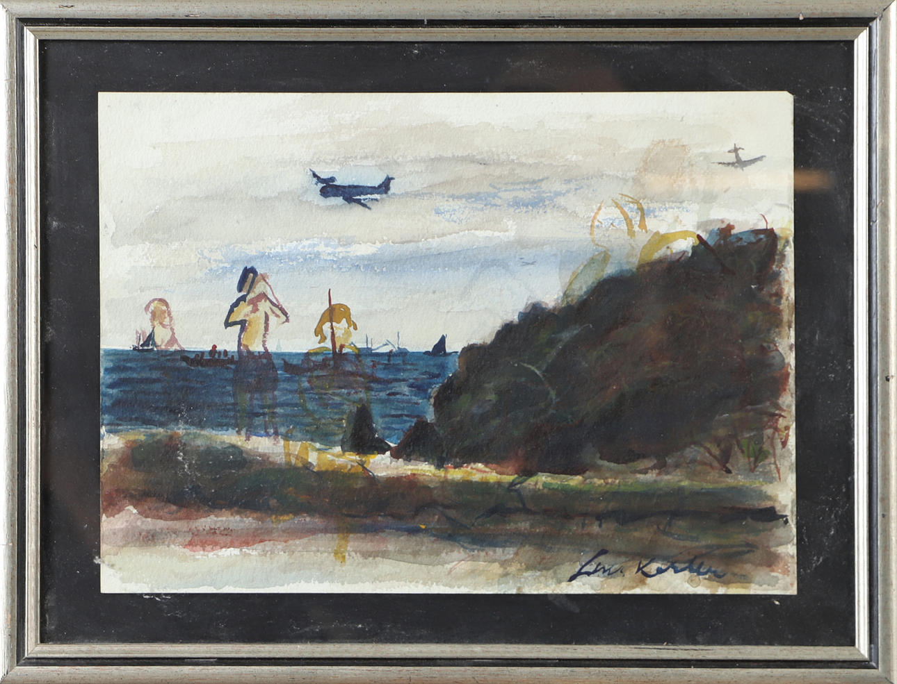 LARS HERDER. Kustparti, blandteknik, signerad.