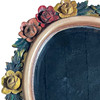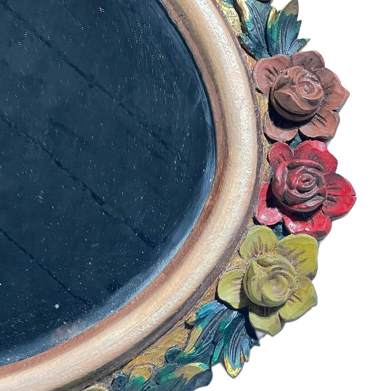 4297257. Snidad träspegel som bildar polykroma rosor.