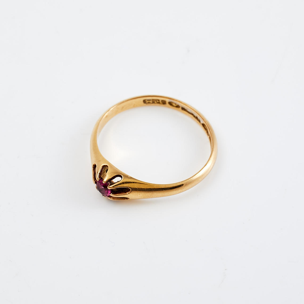 4299218. RING, 18 k guld, med röd ädelsten, 1932.