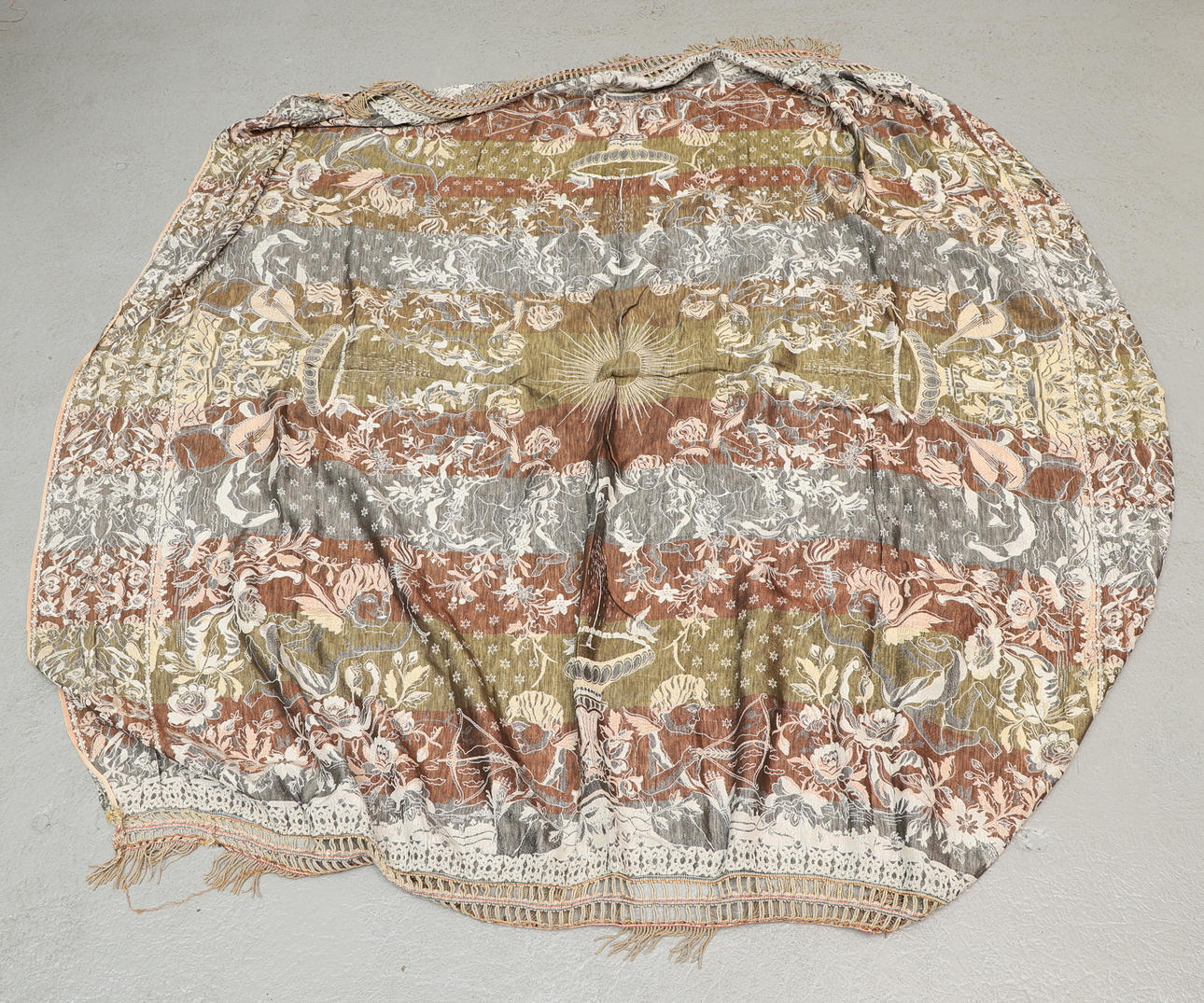 Mått: ca 213x186 cm (exkl. fransar).