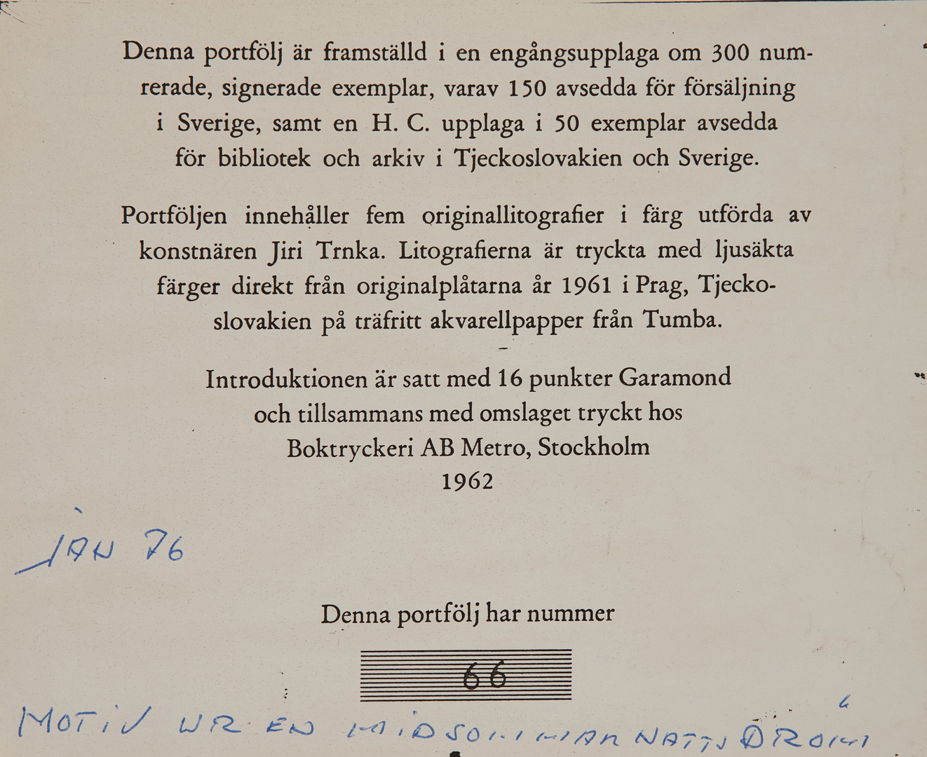 4302537. JIŘÍ TRNKA. 5 st, "En Midsommarnattsdröm".