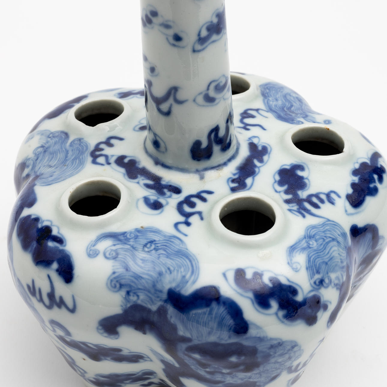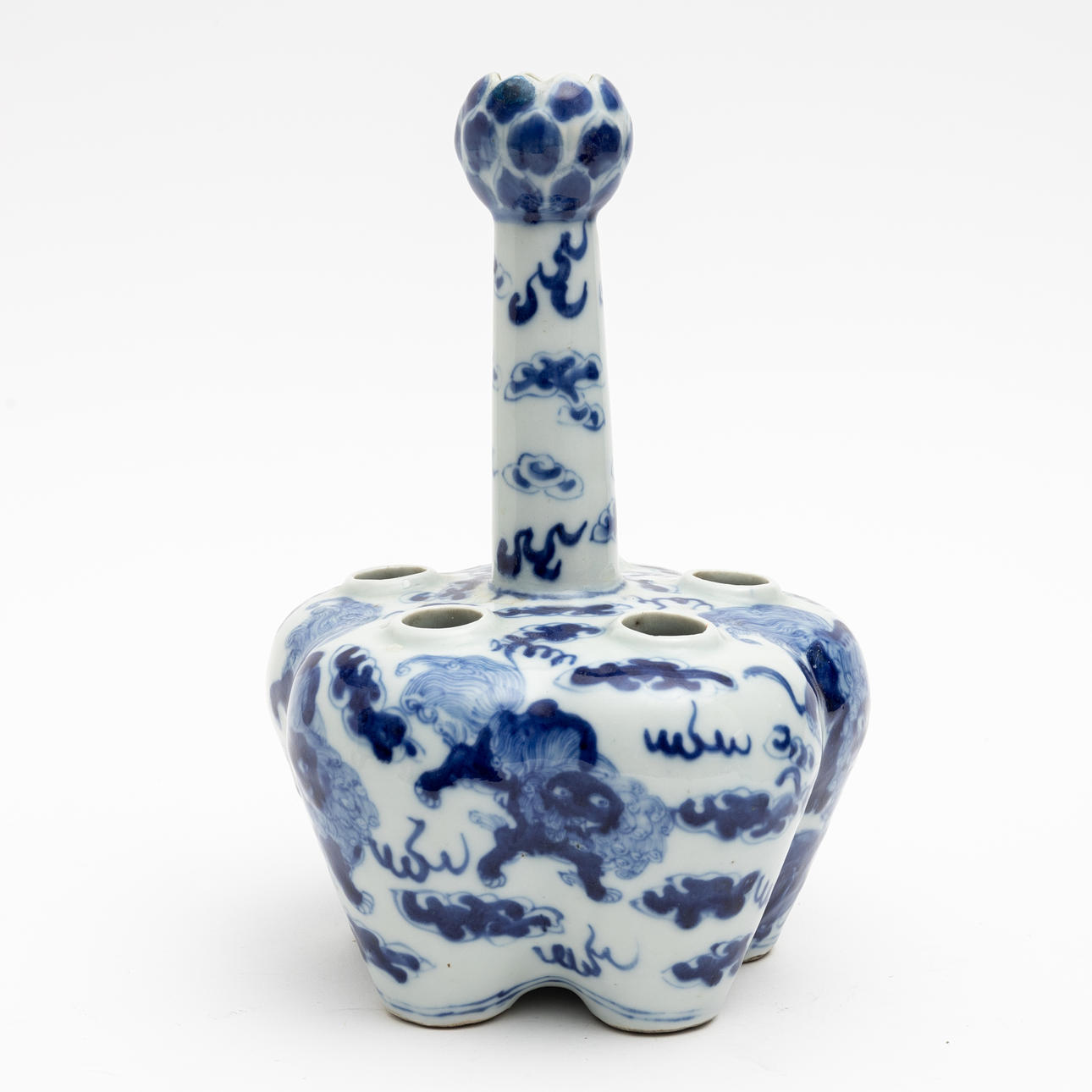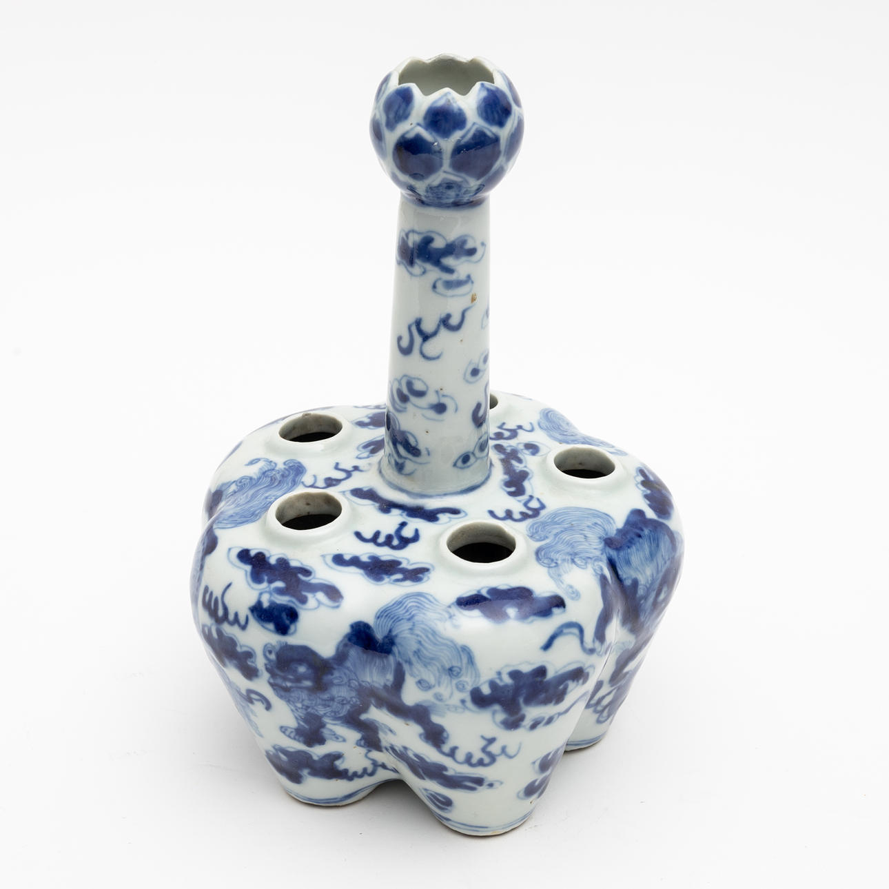 Dekor med fohundar. Diameter ca 16, höjd 25 cm.