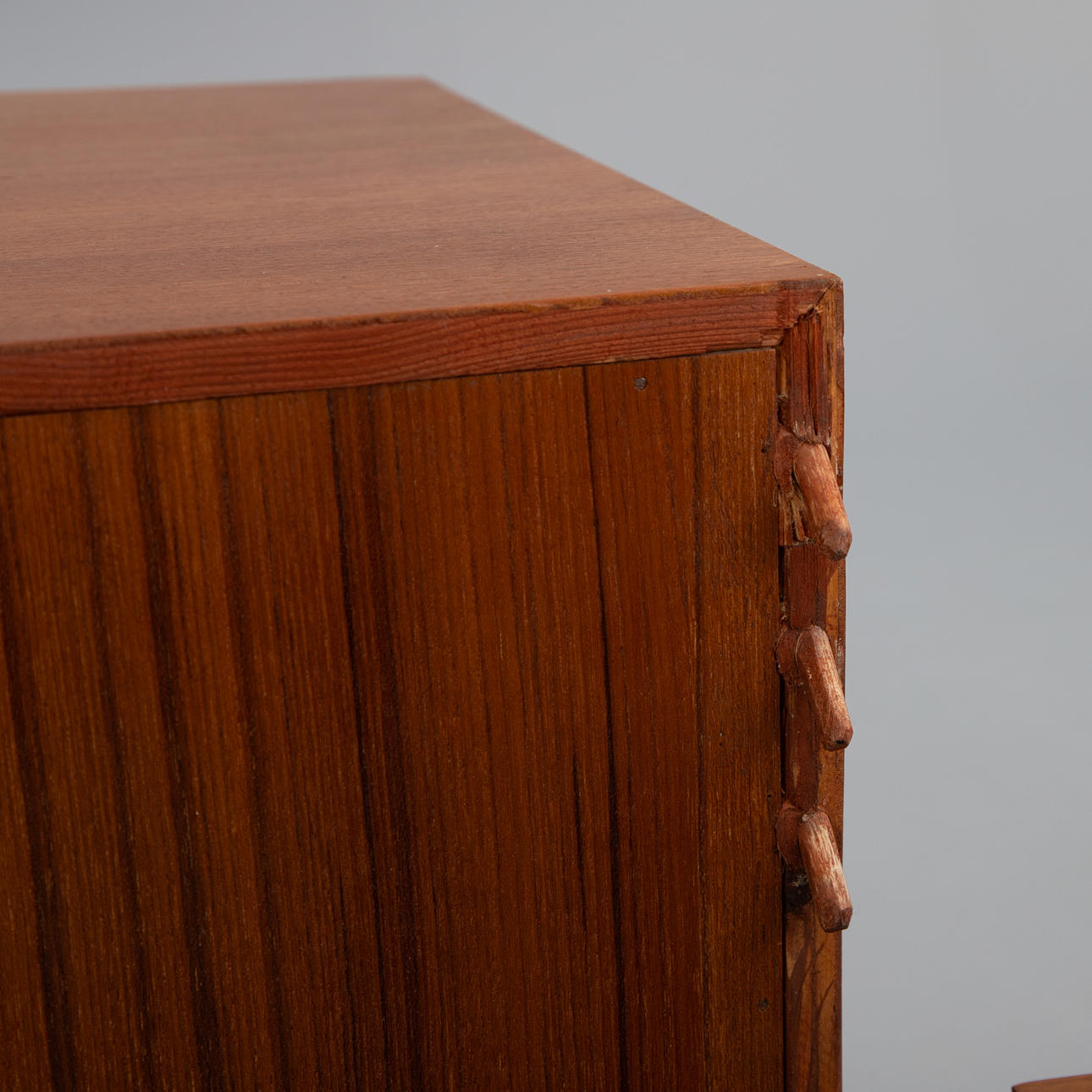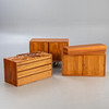 Motiv: Danmark, 1958/1959. teakfanér 6 hyllor, ca. 80 x 22 cm 3 behållare ca 42,5 x 80 x 38 cm 5 väggpaneler ca. 242 x 82 cm.