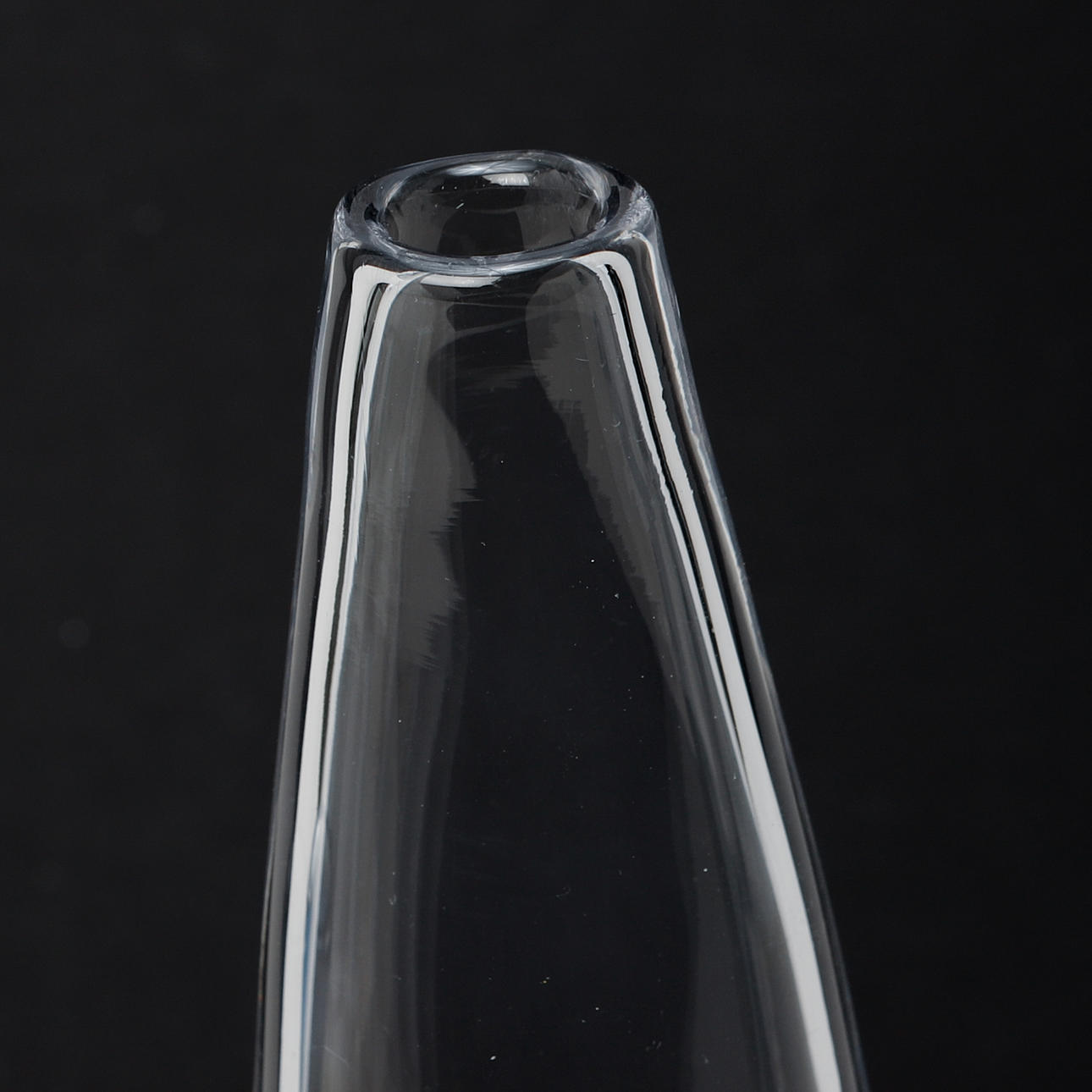 Ytslitage. Små nagg vid botten på den blågrå vasen.